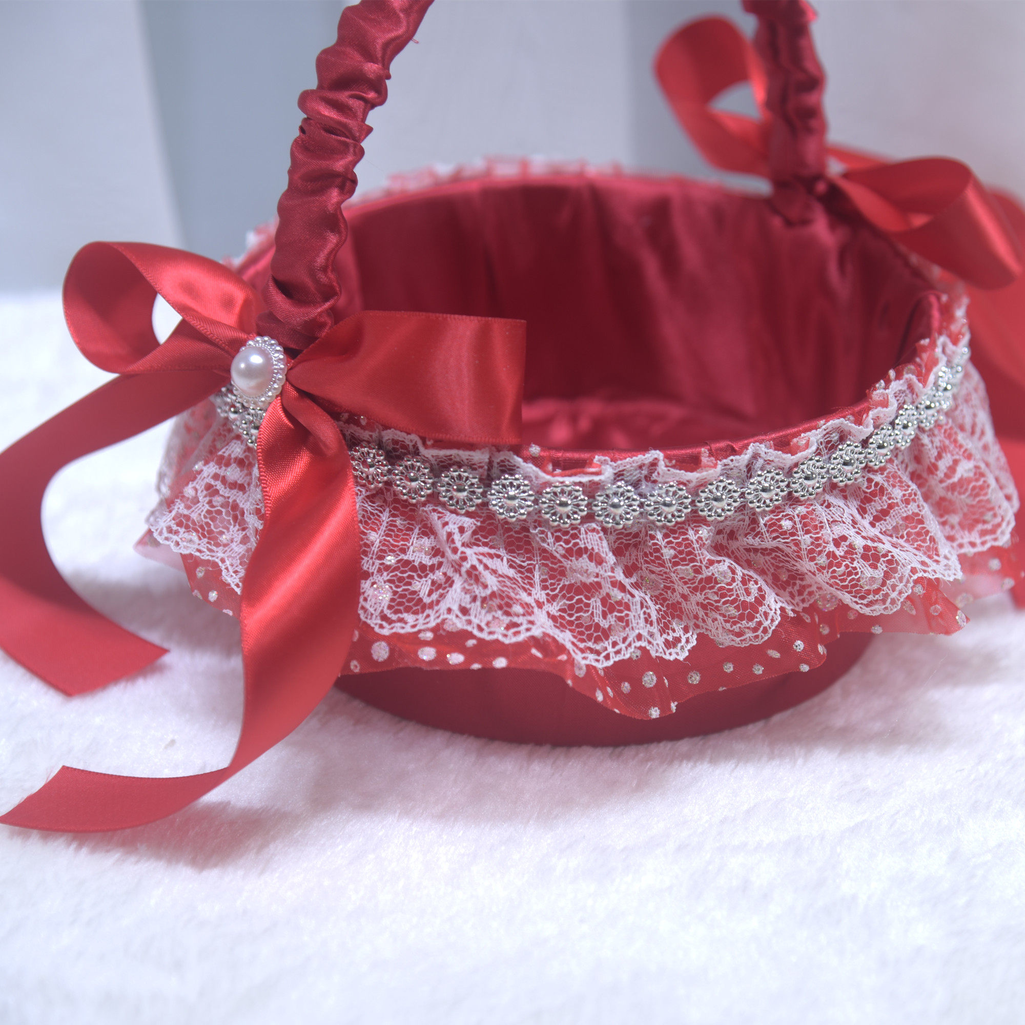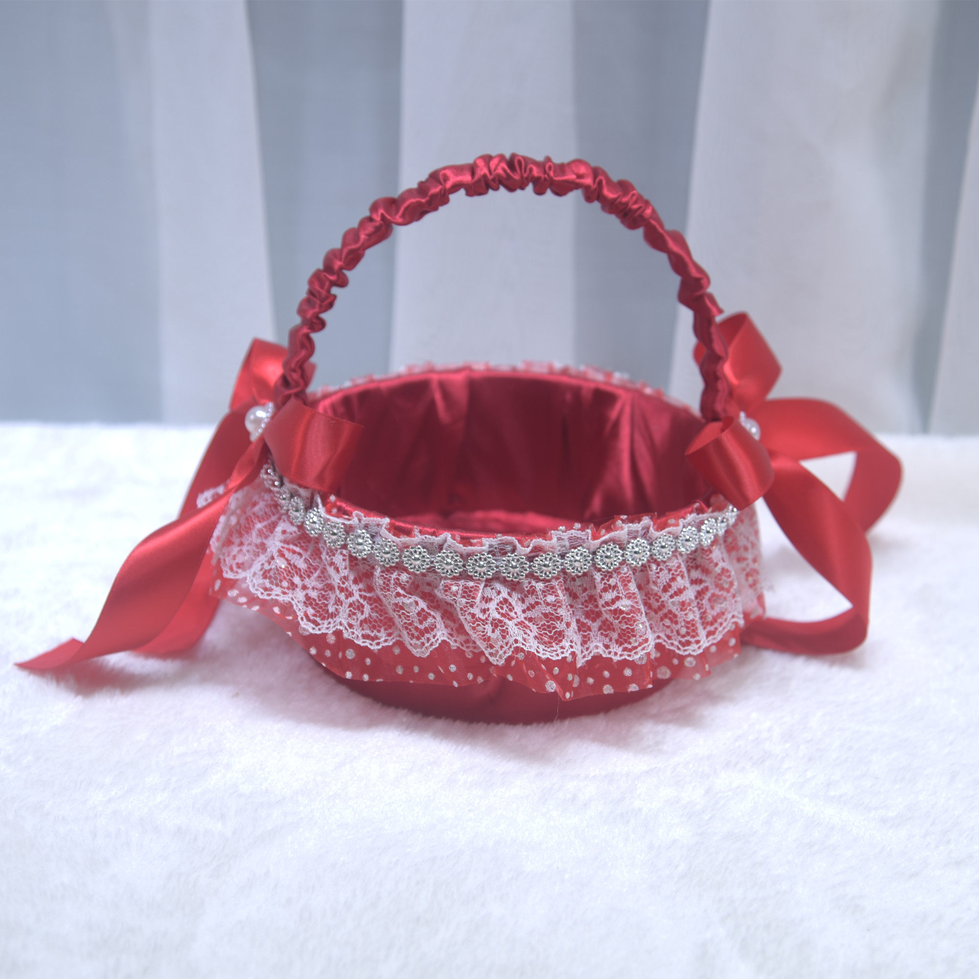 饰收纳手提道具篮子 花童撒花瓣结婚花篮婚礼婚庆喜篮蕾丝花边篮装由