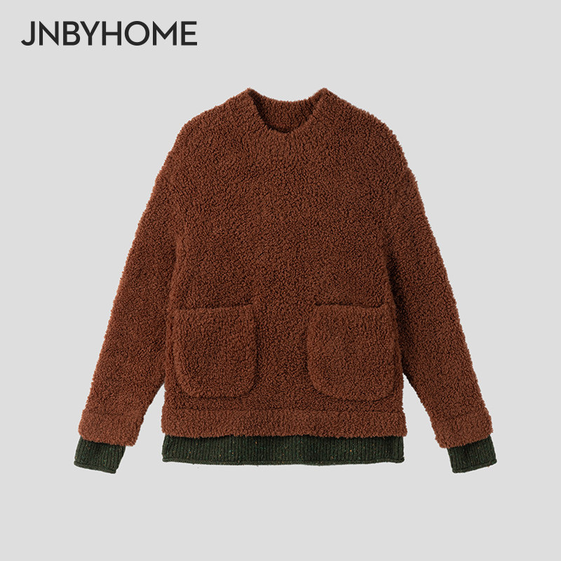 JNBYHOME江南布衣绵羊毛家居服圆领拼接下摆 糯糯羽毛纱毛衣