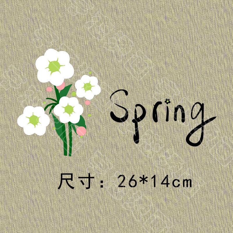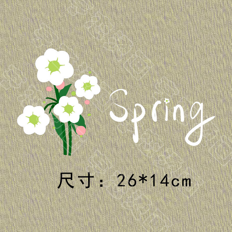 简约唯美文艺小清新白花朵spring字母热转印T恤卫衣印花白墨烫画