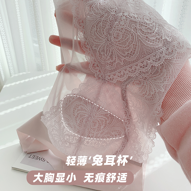 大胸显小 性感蕾丝透明文胸 超薄兔耳杯无痕美背无钢圈女士内衣由