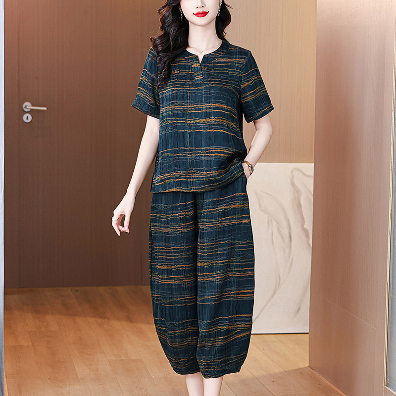 民族风桑蚕丝香云纱套装 夏季 显瘦气质妈妈装 真丝两件套 女2025新款