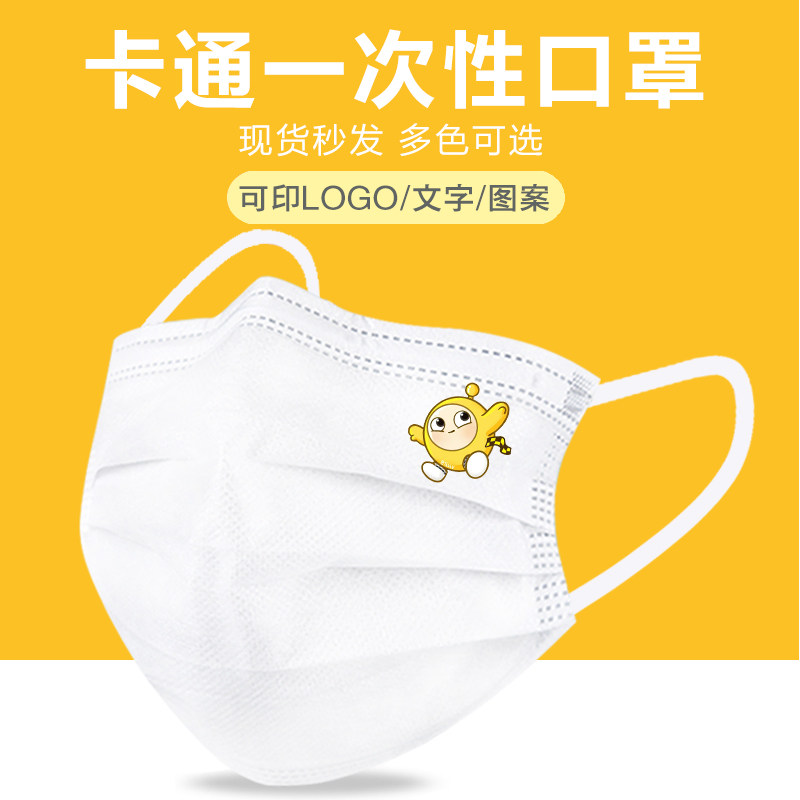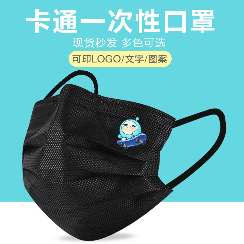 印图logo 蛋仔派对卡通一次性口罩三层黑白色大人儿童可爱创意个性由