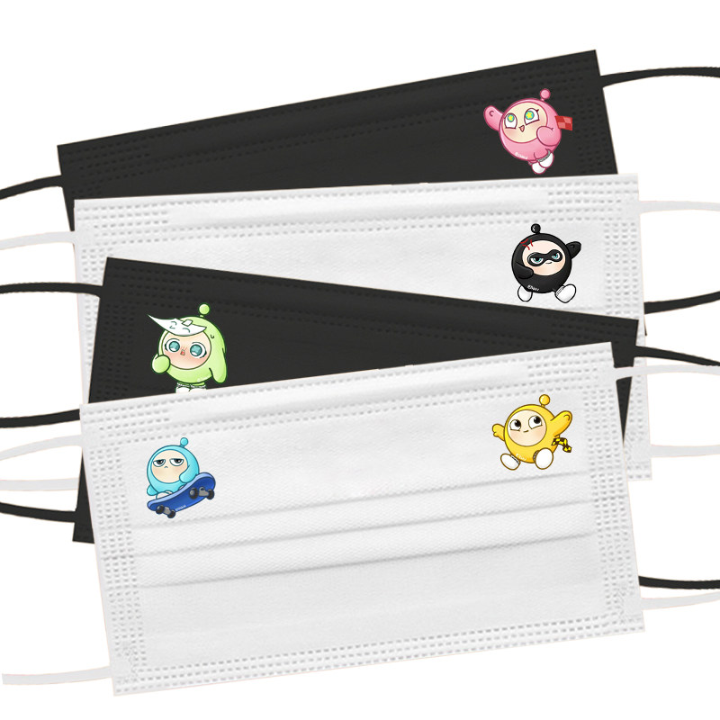 印图logo 蛋仔派对卡通一次性口罩三层黑白色大人儿童可爱创意个性