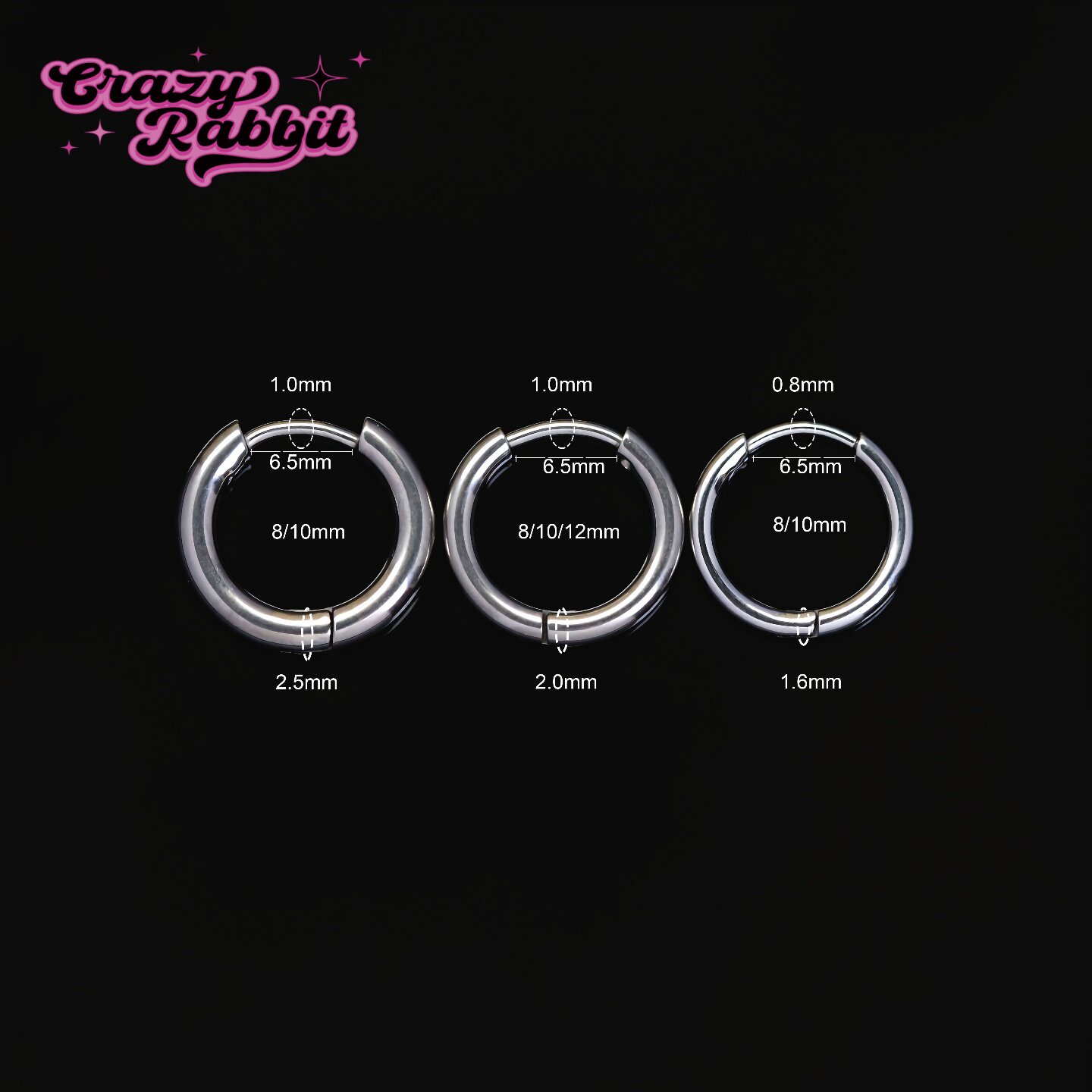 为您提供商品CrazyRabbit 耳钉耳扣圈圈耳饰 F136医用钛合金素圈耳环百搭个性的详细介绍,