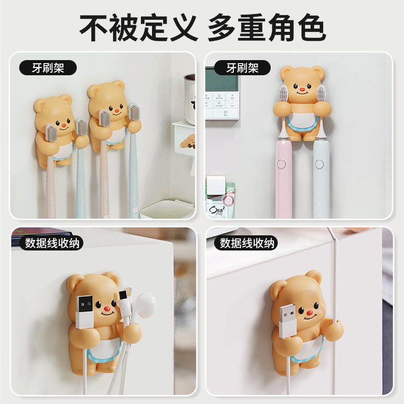 梳子架牙刷置物架子情侣电动牙刷底座 卡通可爱牙刷架免打孔壁挂式由