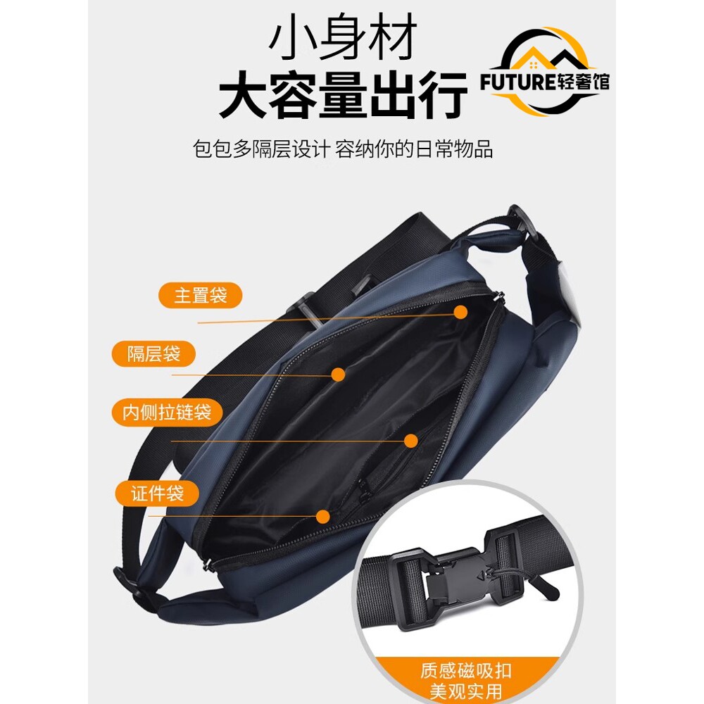 斜挎包大容量胸包通勤旅行骑行机车背包运动单肩包防水 磁吸扣男士