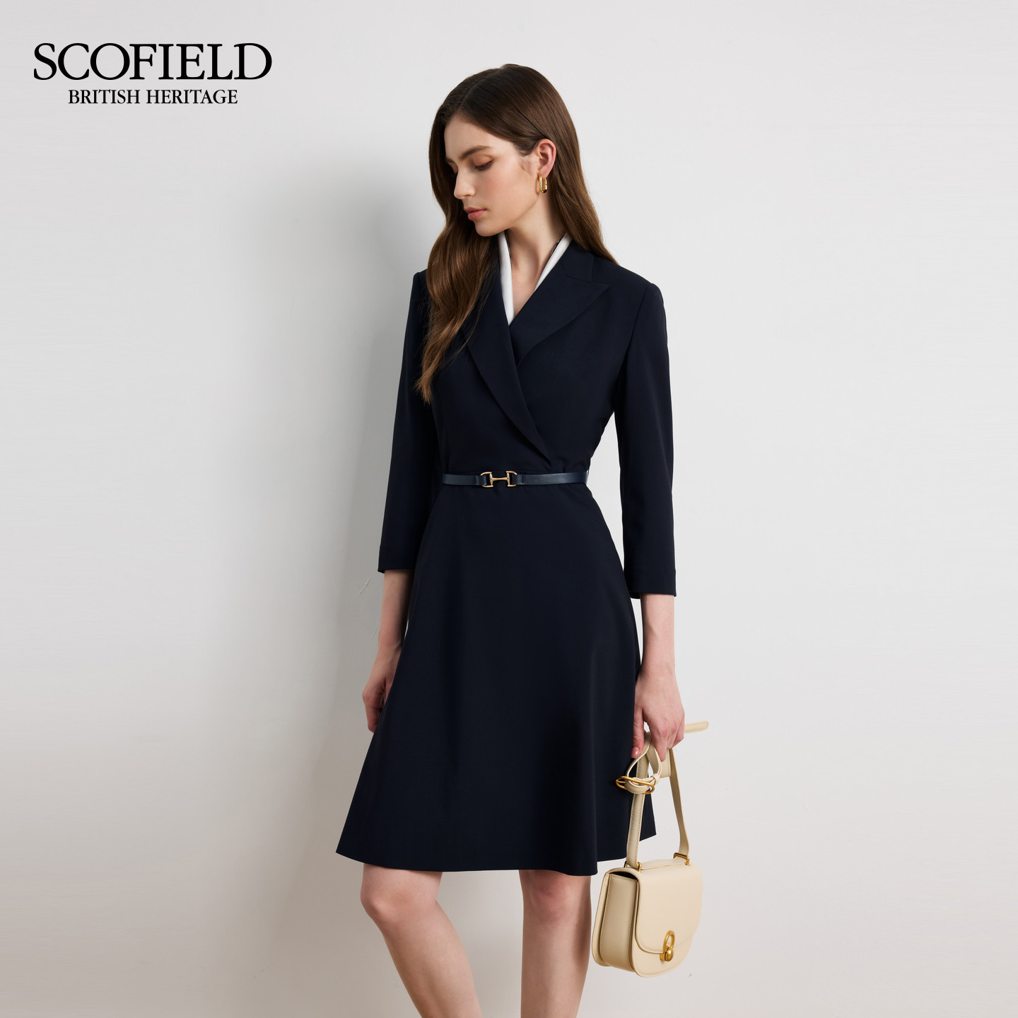 Scofield女装 连衣裙金属扣腰带早秋 利落气质收腰A摆西装由