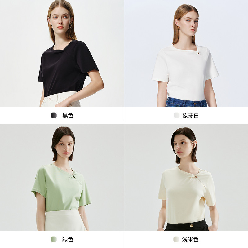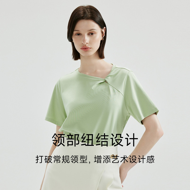 为您提供商品T恤正肩气质通勤复古风上衣女士 PRICH简约淡人设计感扭结短袖的详细介绍,