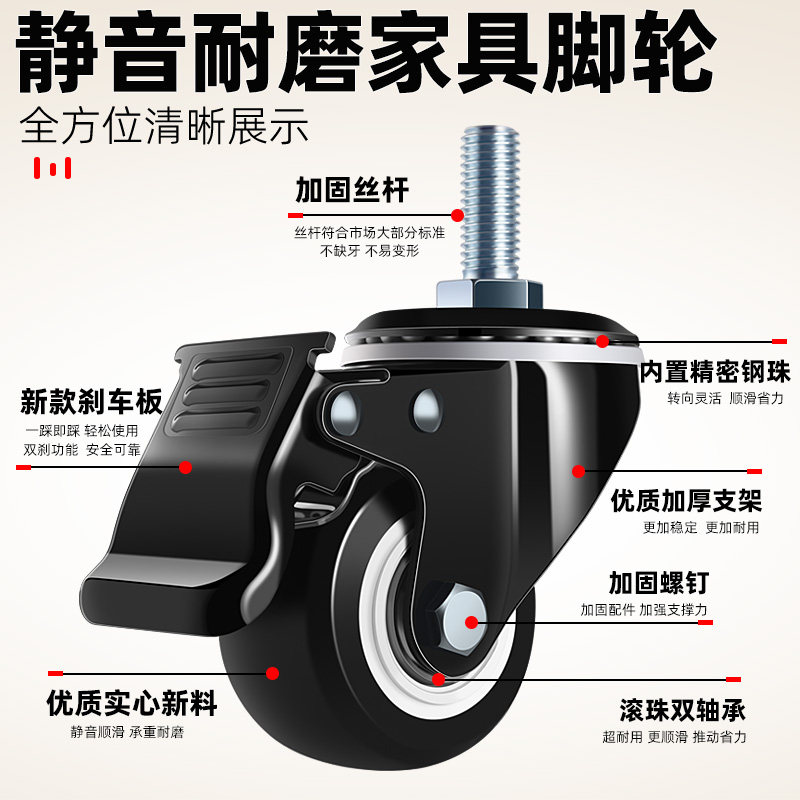 脚轮1.5寸2寸2.5寸3寸万向轮静音脚轮刹车轮子定向轮家具轮箱包轮