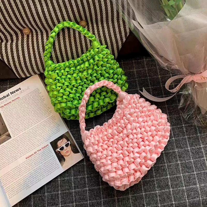 丝巾编织包夏天可爱荧光绿小众手提手拿小包泫雅风真丝带丝绸手机由