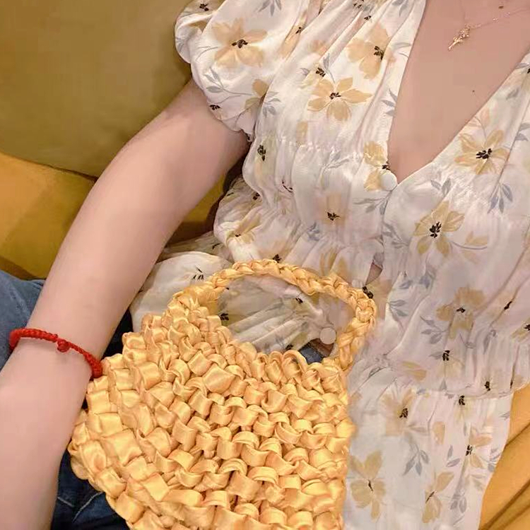 为您提供商品丝巾编织包夏天可爱荧光绿小众手提手拿小包泫雅风真丝带丝绸手机的详细介绍,