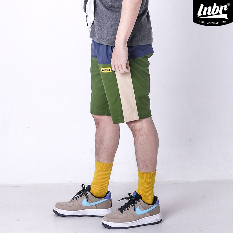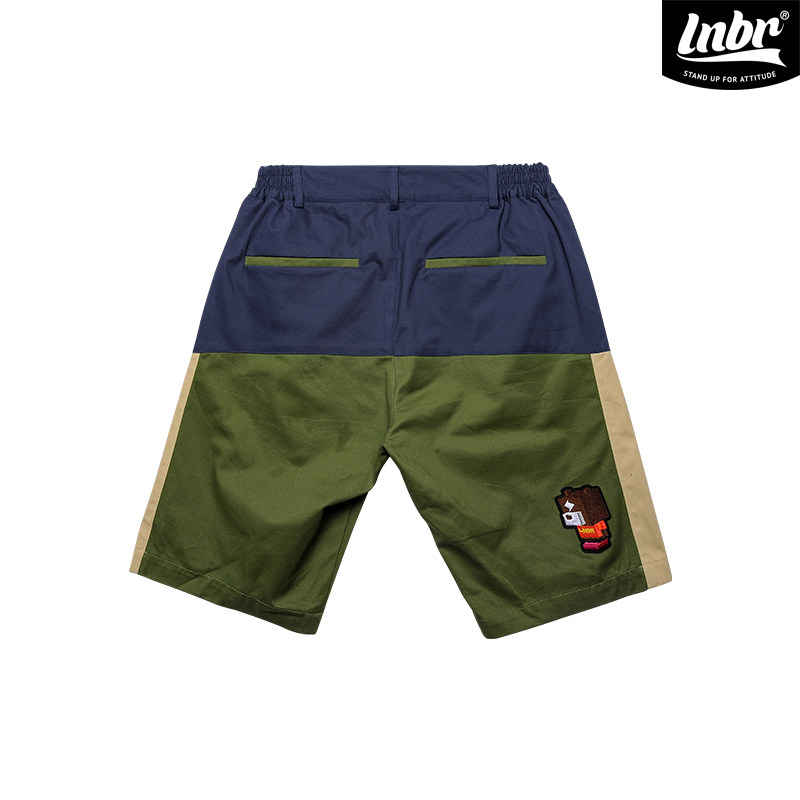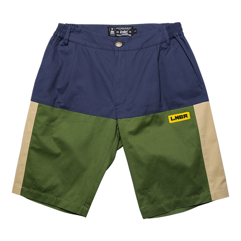 LNBR熊电绿色拼接工装 宽松休闲五分裤 加大码 男 短裤