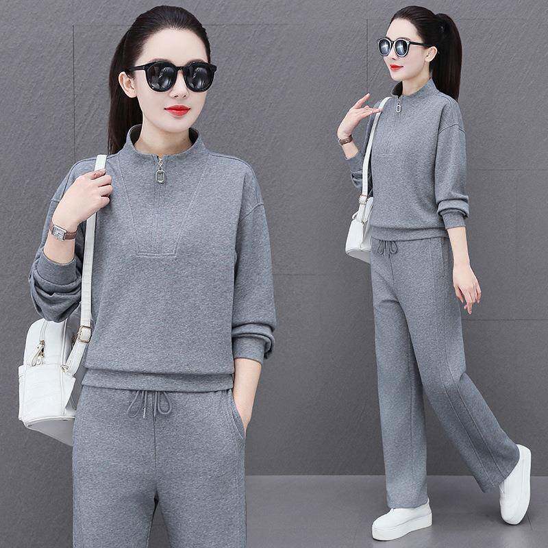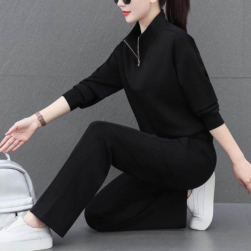 时尚 洋气显瘦减龄卫衣休闲服两件套 女春秋2025新款 半拉链运动套装由