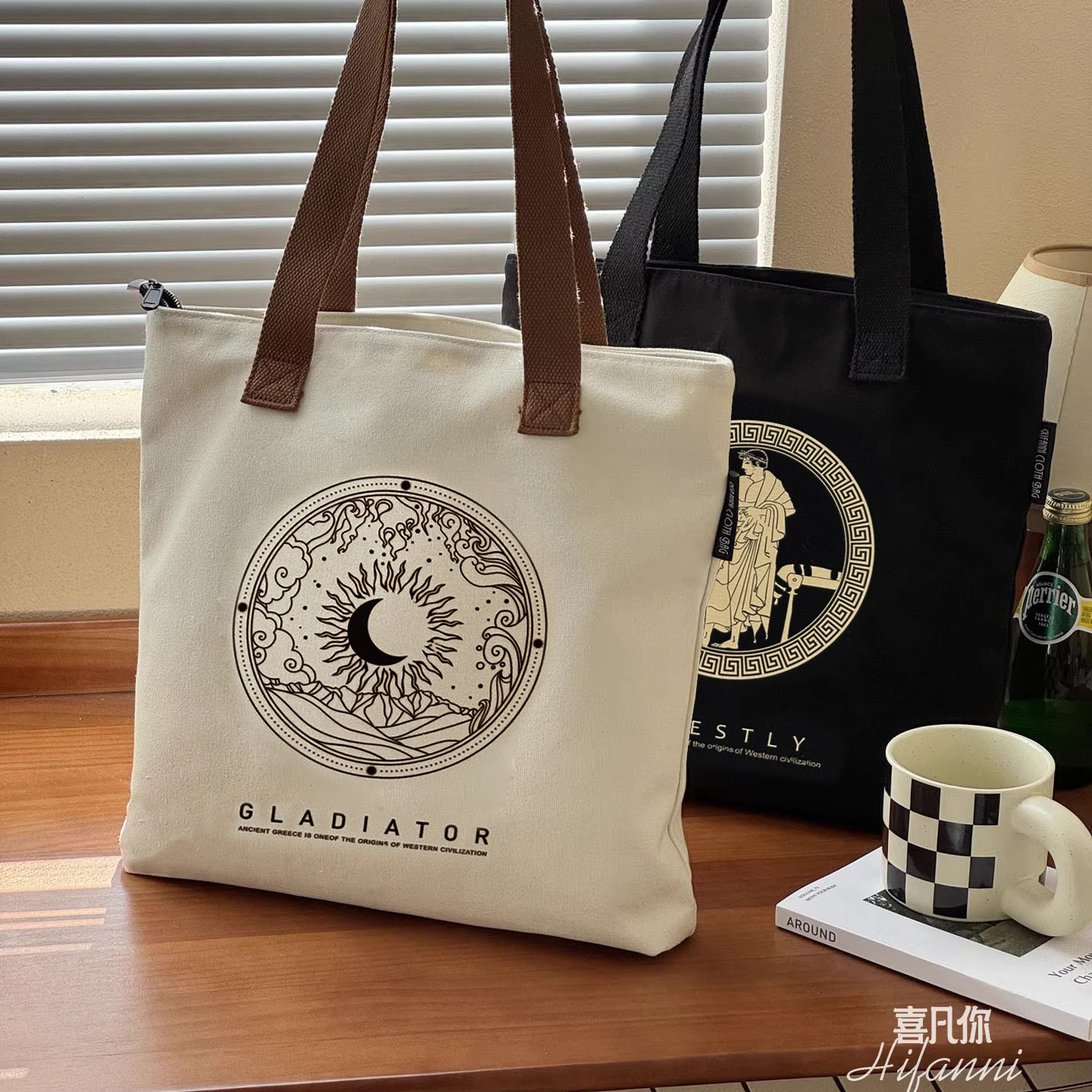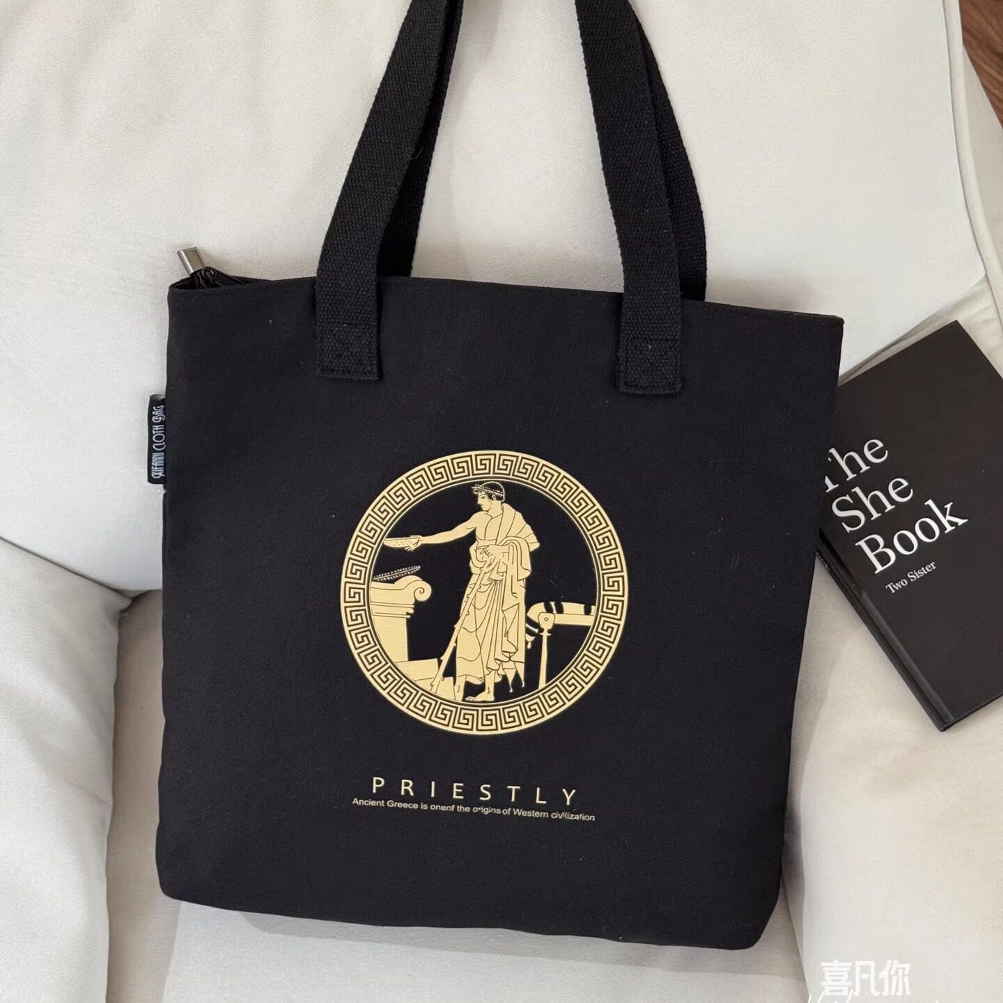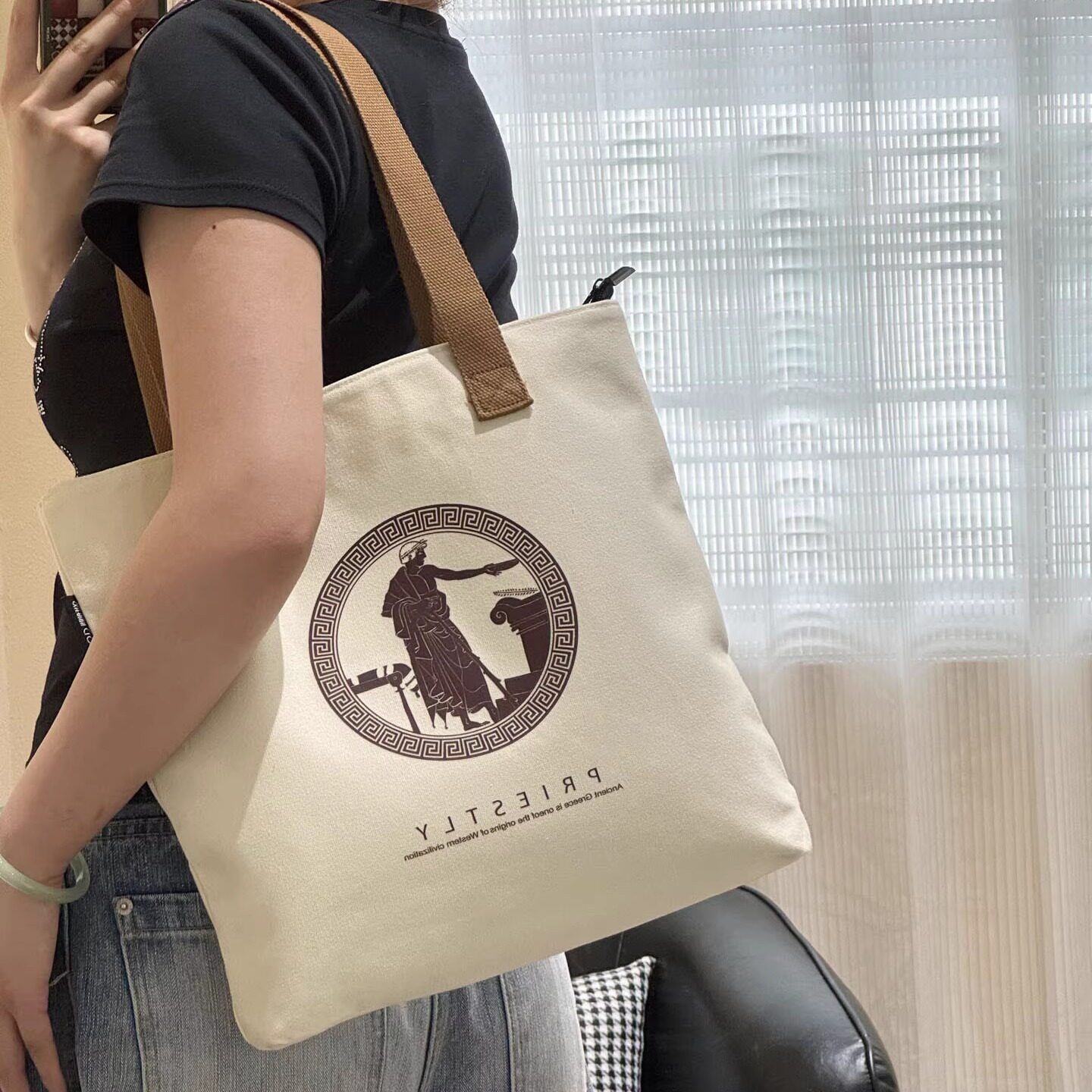 希腊文艺加厚托特包休闲百搭通勤大容量单肩帆布包 原创自制欧式