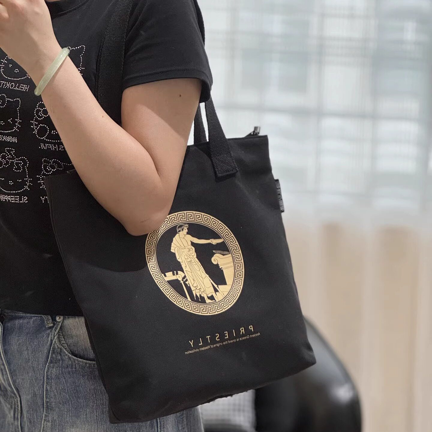 希腊文艺加厚托特包休闲百搭通勤大容量单肩帆布包 原创自制欧式由