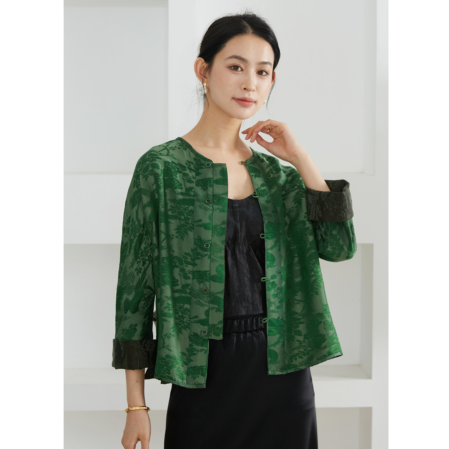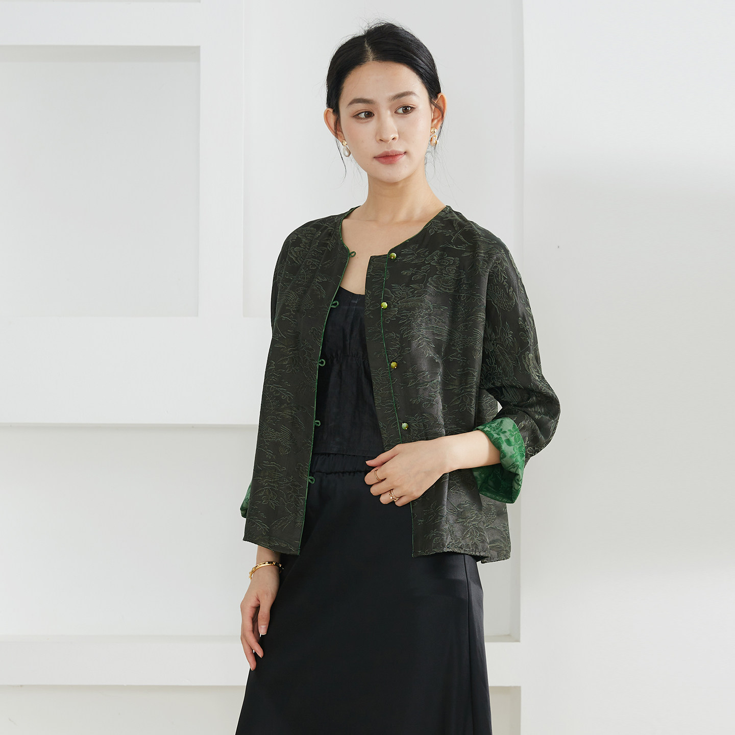 一丝牵 外套女桑蚕丝国风春 双面穿40姆米香云纱提花真丝上衣开衫
