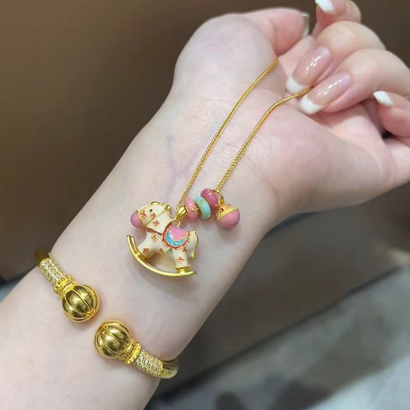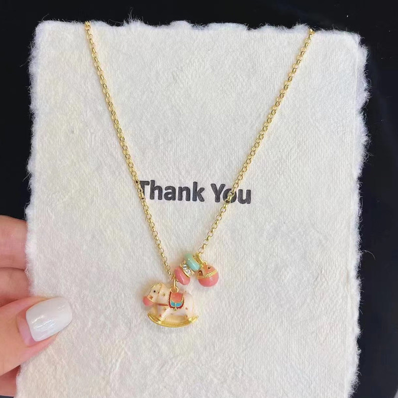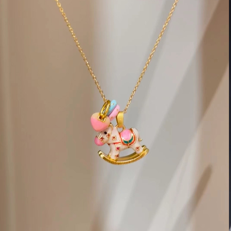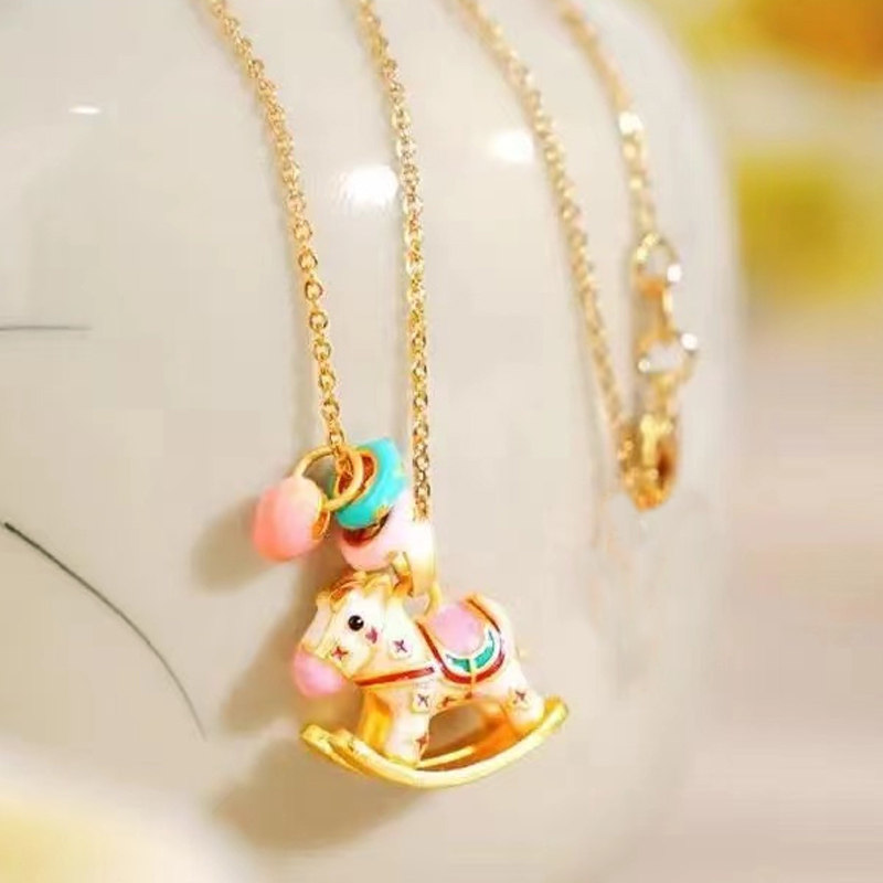 小马吊坠颈链 彩虹小木马项链重工古法可爱珐琅多巴胺锁骨链新中式