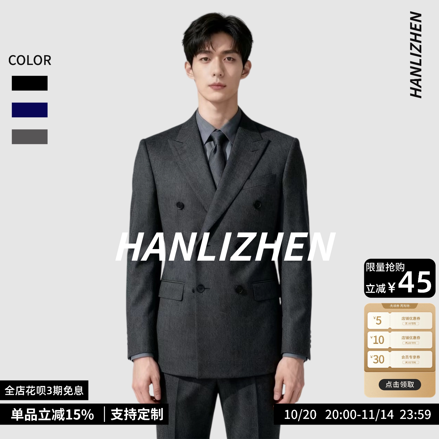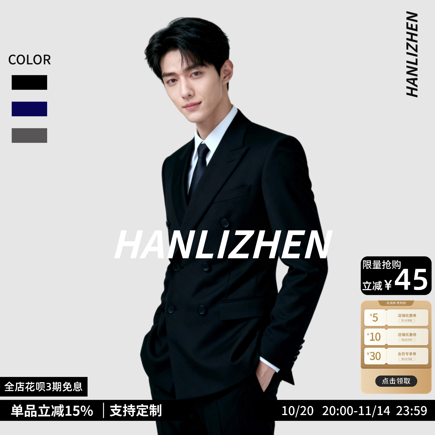 新郎结婚韩版 男士 英伦风帅气商务西装 套装 型男高端双排扣西服 修身由