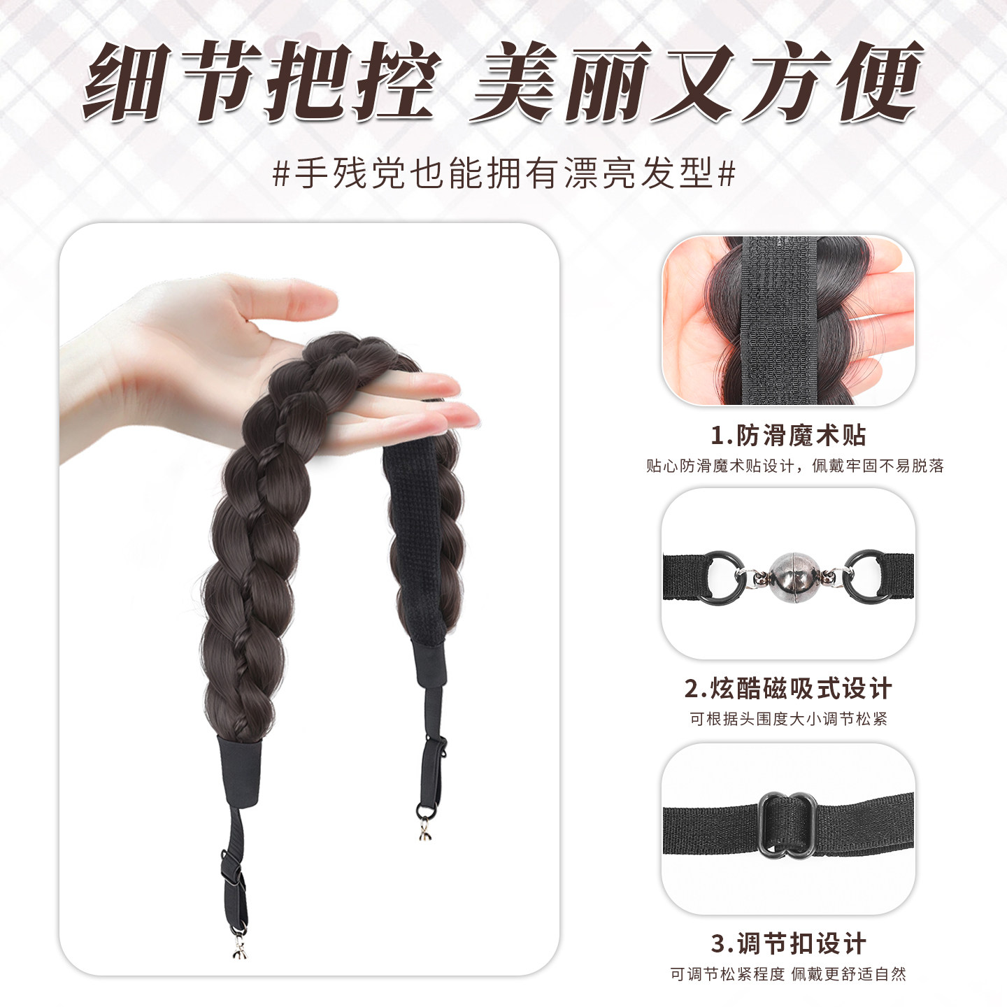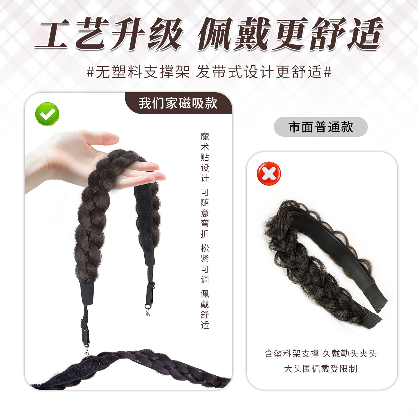 为您提供商品鱼骨辫发箍假发一体女麻花辫编发长辫子发饰发带高颅顶头饰 磁吸式的详细介绍,