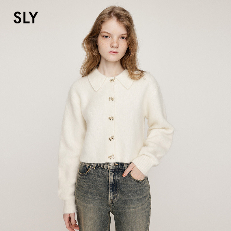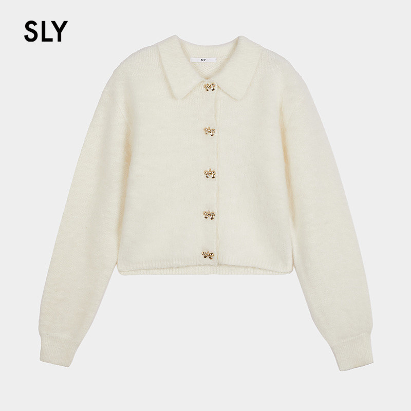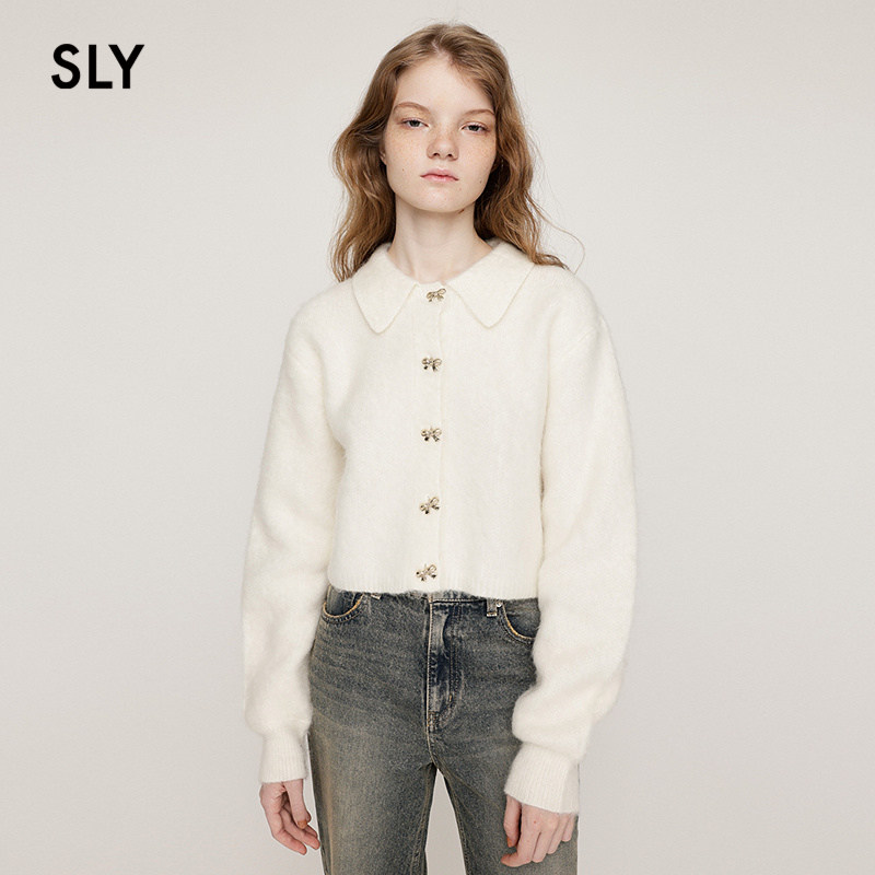 SLY春季 温柔风软糯泡芙蝴蝶结纽扣针织开衫 030IA470 2651 新品