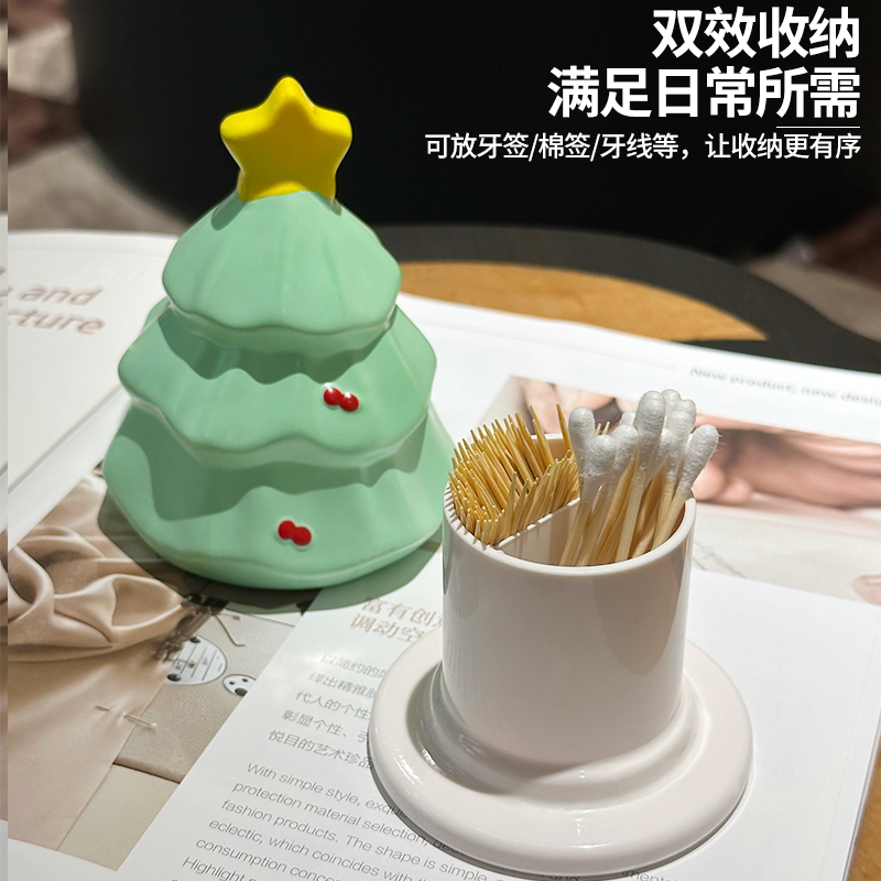 创意圣诞树牙签筒客厅茶几餐桌面摆件牙线棉签收纳盒圣诞节礼物由
