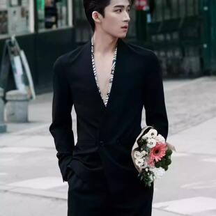 为您提供商品明星王星越同款 男潮流韩版 雅痞高级感百搭休时尚 潮 黑色双领口西装的详细介绍,