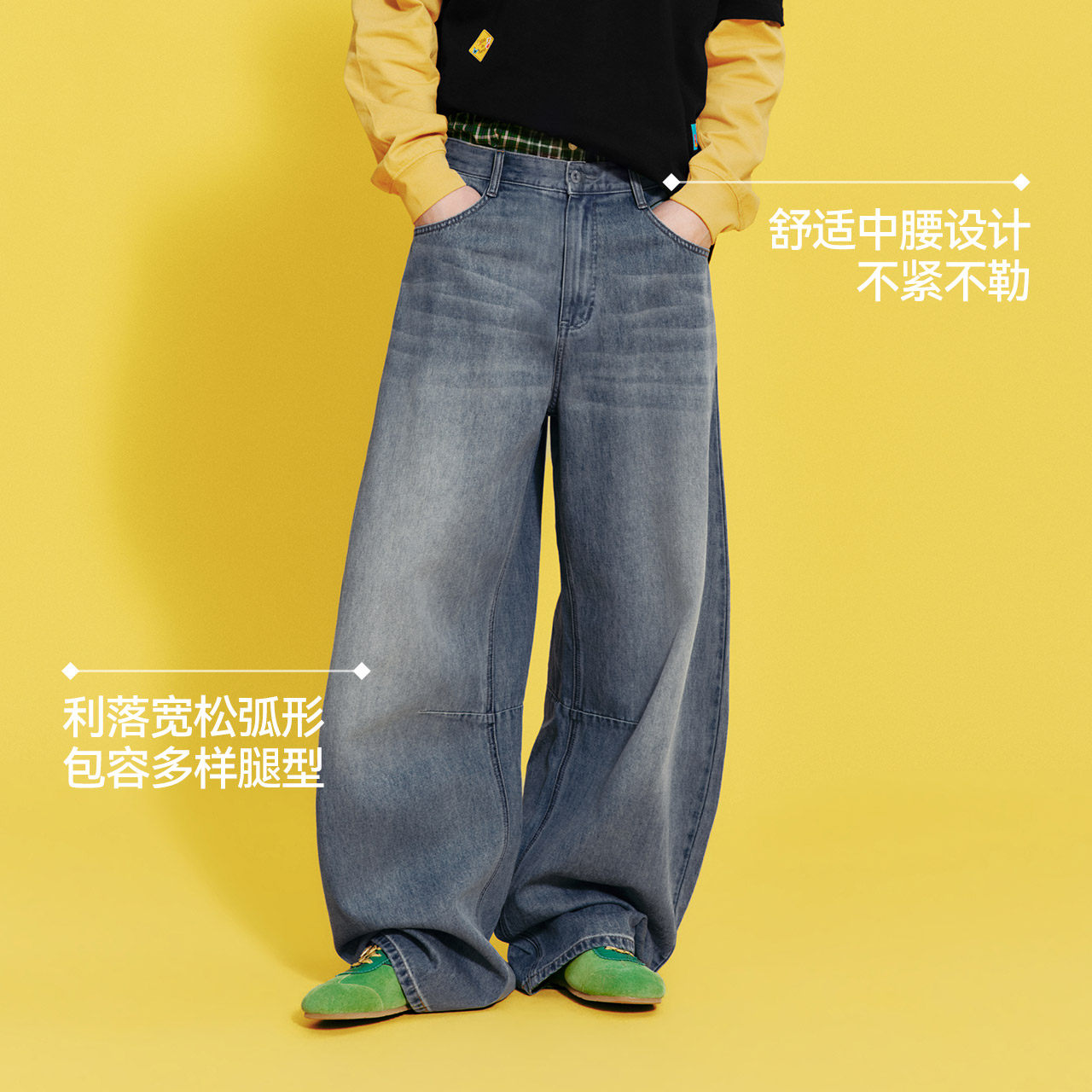 男女潮牌高级感香蕉休闲长裤 复古原色廓形弯刀牛仔裤 INKNOTS美式