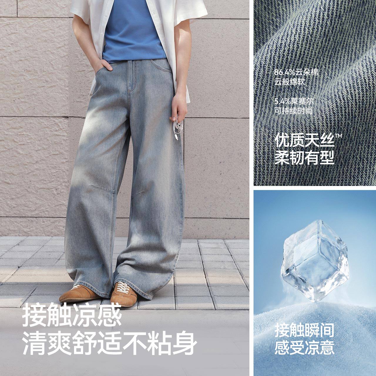 凉感长裤 2026 男夏显瘦阔感弯刀裤 森马牛仔裤 王安宇同款 森柔