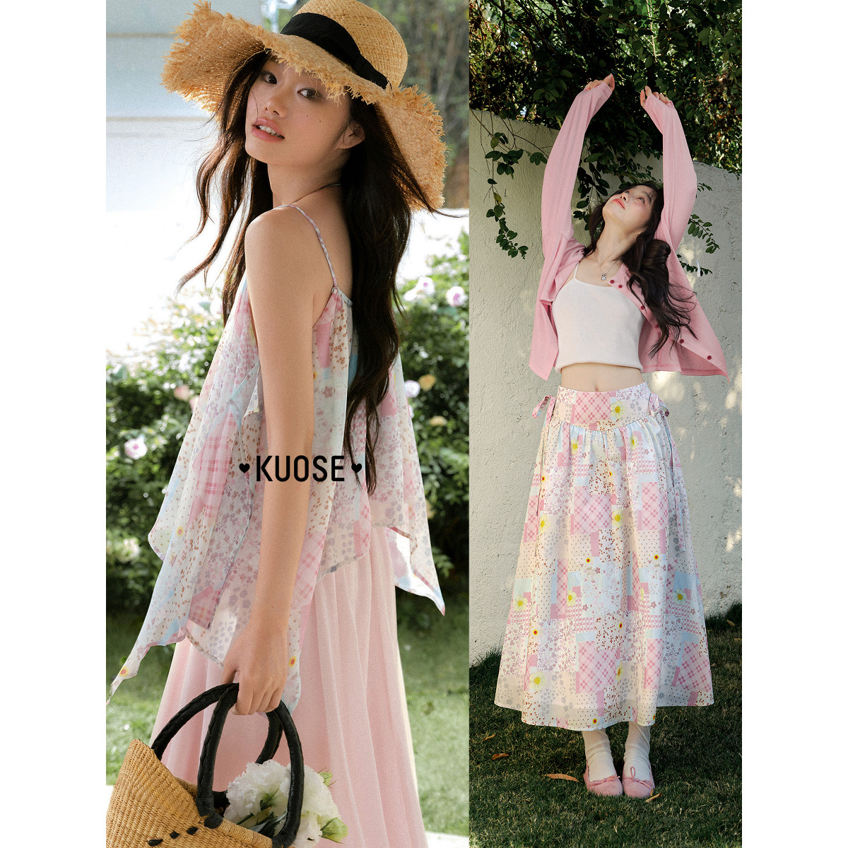 女吊带上衣 阔色粉色格子碎花半身裙半裙子新26早春漂亮穿搭夏季