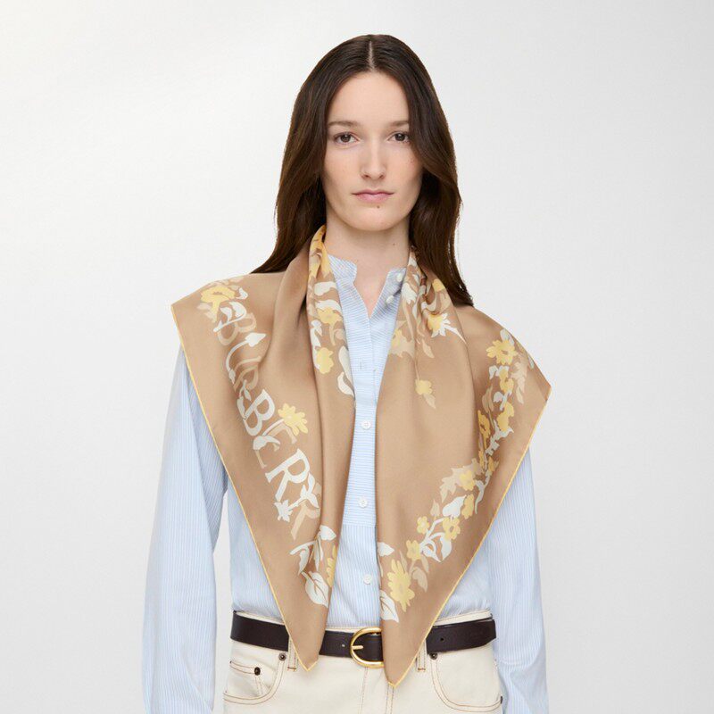 BURBERRY 花卉图案马术骑士徽标丝巾 81256381 24期免息由