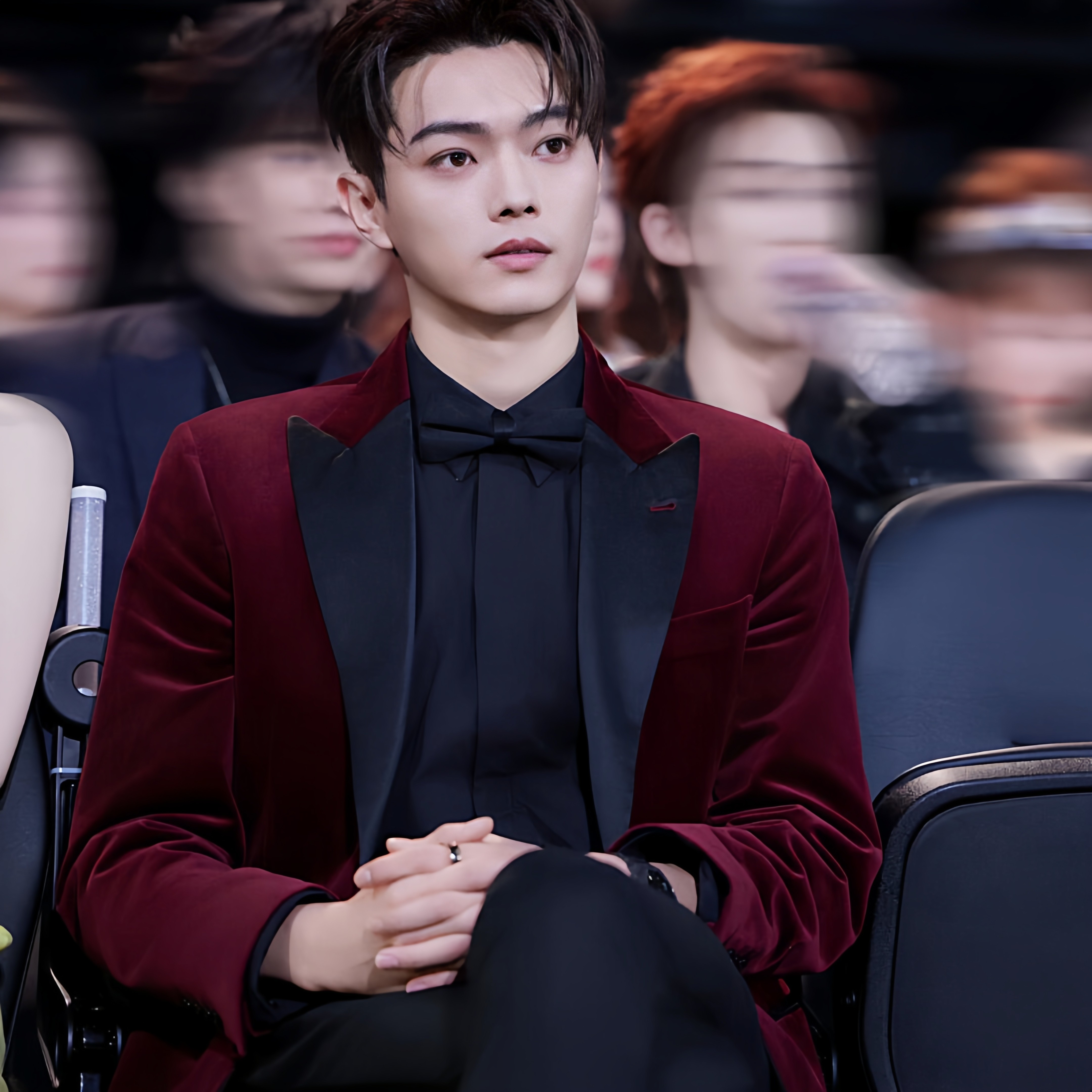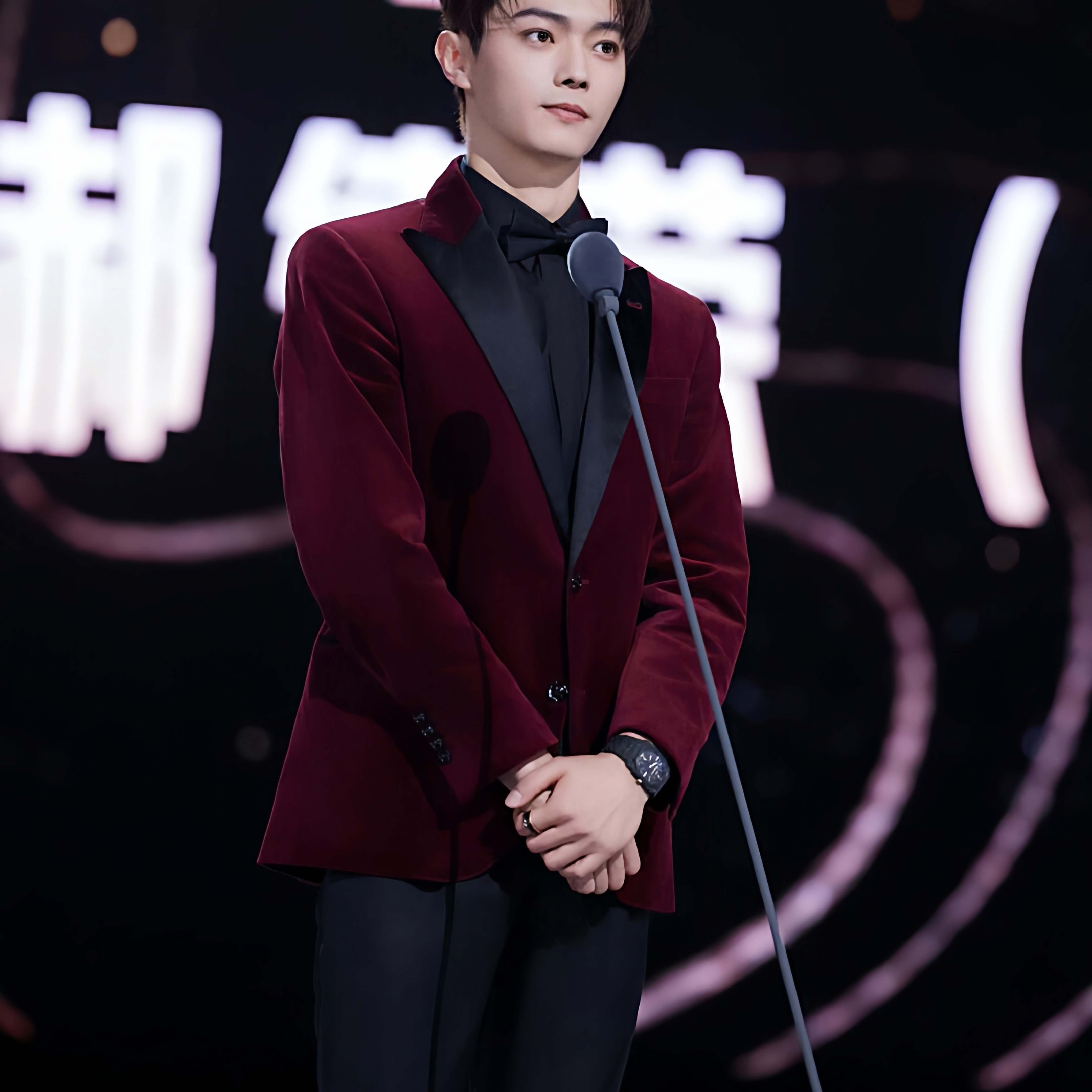 许凯明星同款 宴会礼服男西装 戗驳领修身 西服男 酒红色轻奢丝绒西装