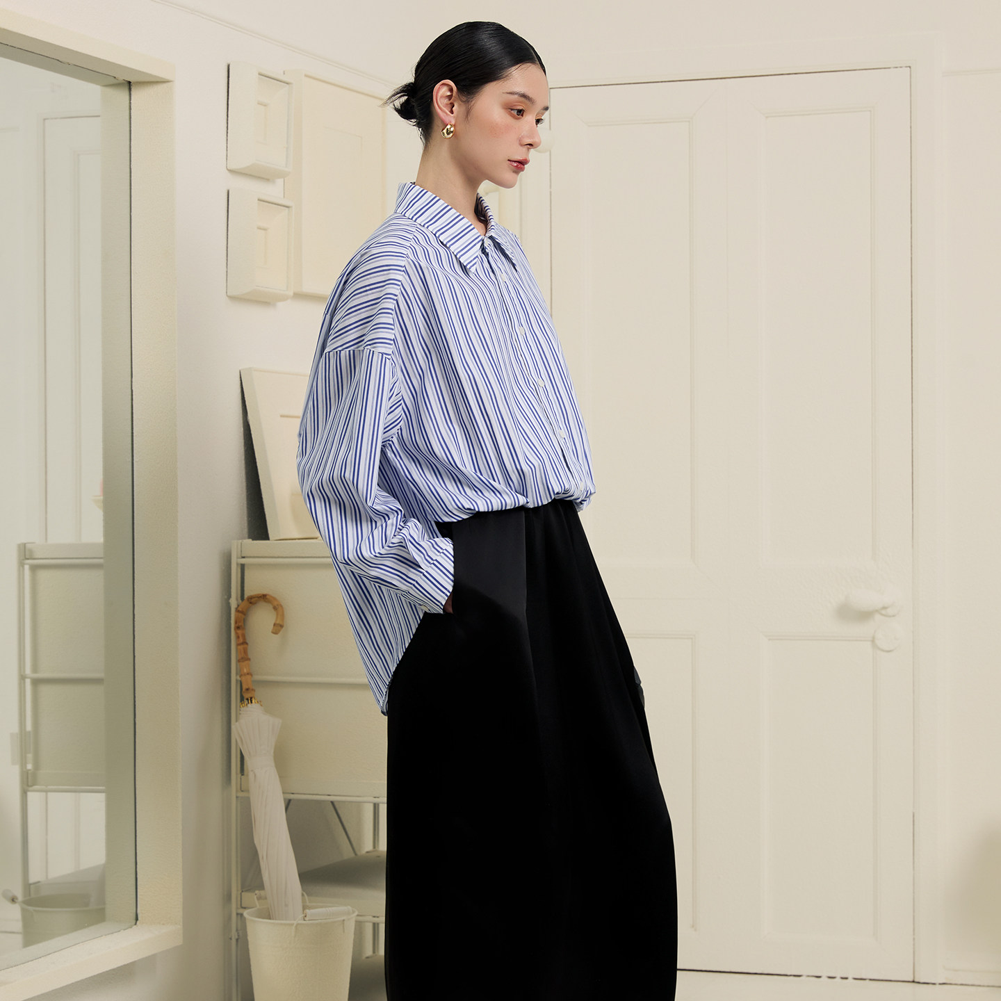 假两件条纹衬衫 ALL BEINGS2026SS夏季 新款 醋酸连衣裙套装由