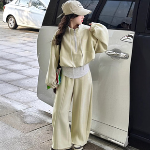 女运动休闲通勤慵懒时尚 2026春款 套装 两件套长袖 百搭阔腿裤