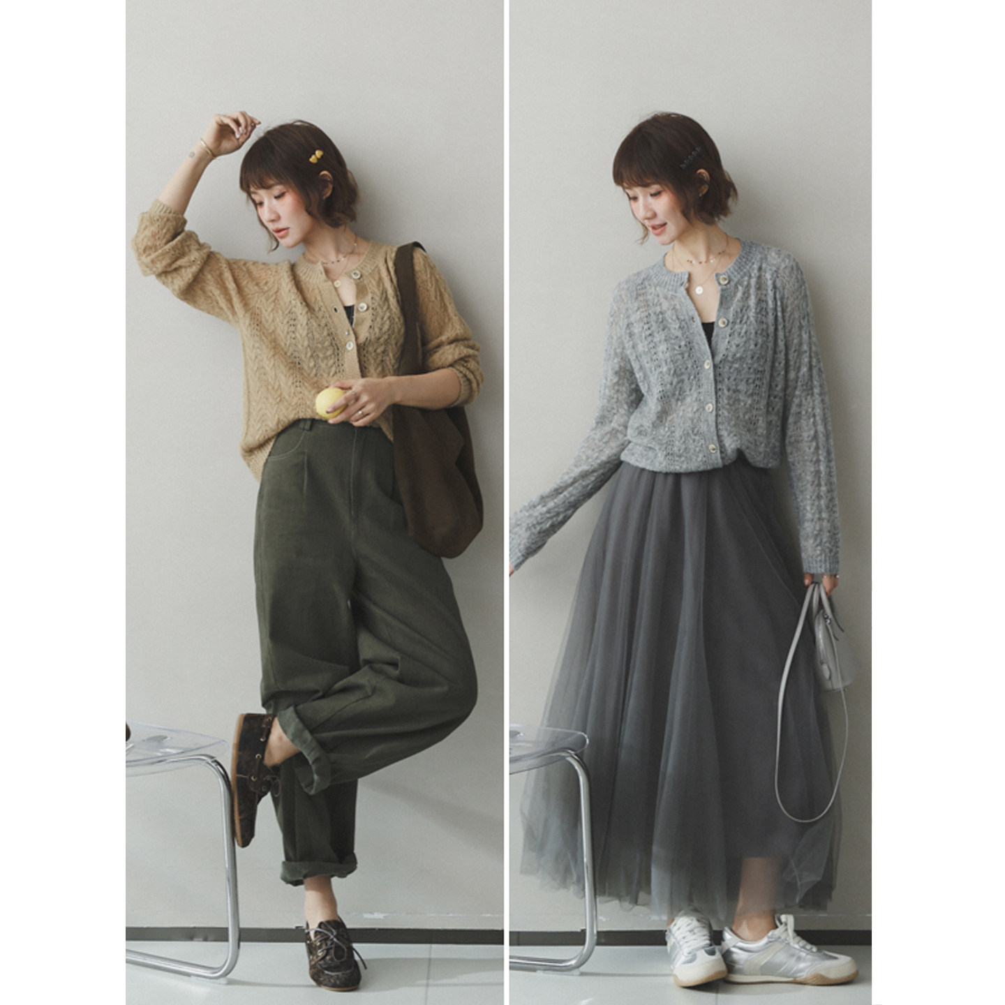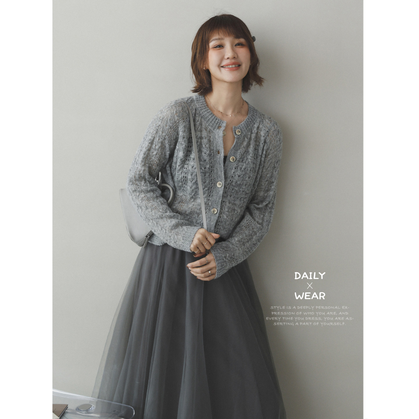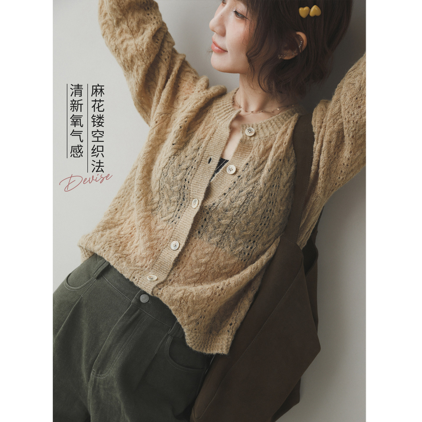 镂空绵羊毛混纺开襟针织衫 苹果 生活家 氧气感穿搭 外套 毛衣开衫