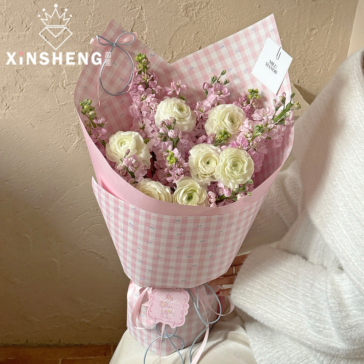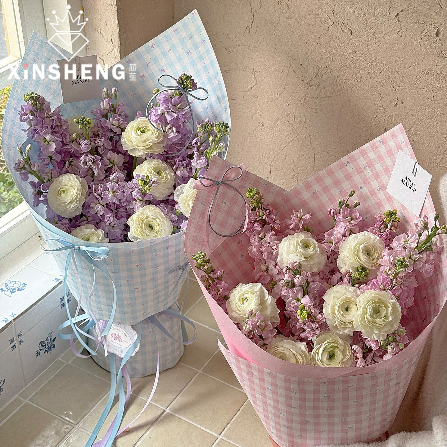 芯苼 纸鲜花花束手工diy浪漫格纹花艺包花纸资材 原创小花格·包装
