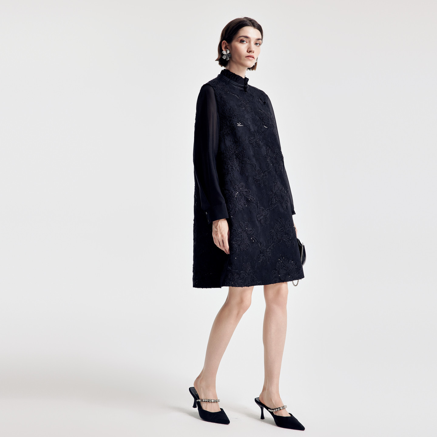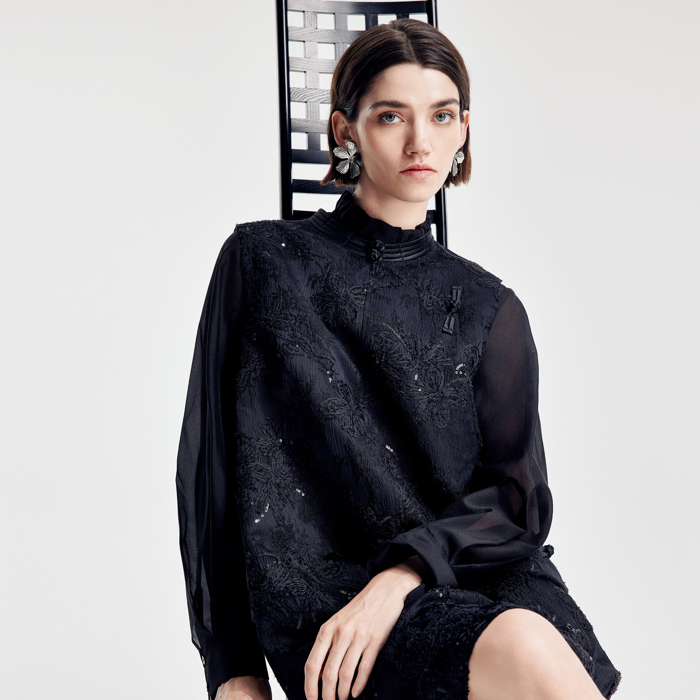 为您提供商品黑色木耳边领衬衫 H型中国风刺绣外套1251S01YJ1 新品 婉甸2026春季的详细介绍,