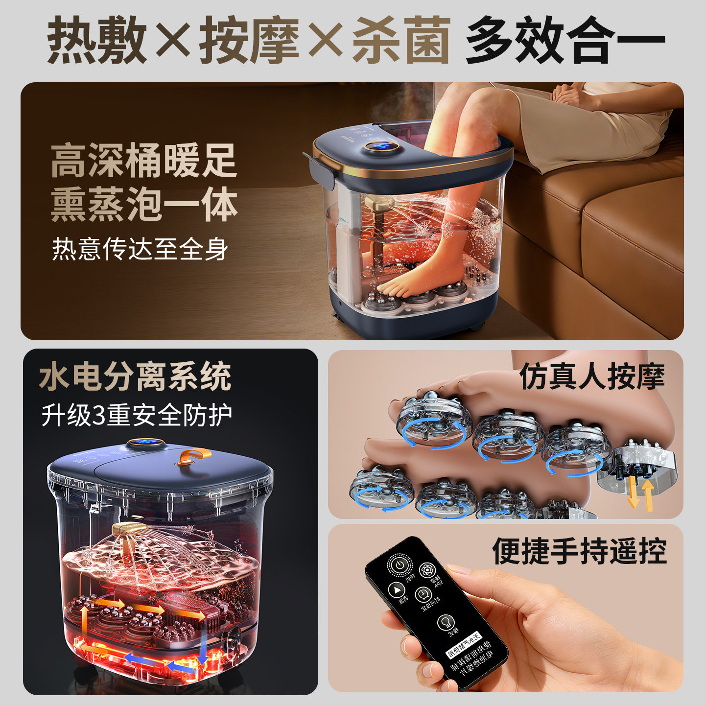 泡脚桶加热恒温足浴盆杀菌自动按摩器家用电动智能高深洗脚桶 美