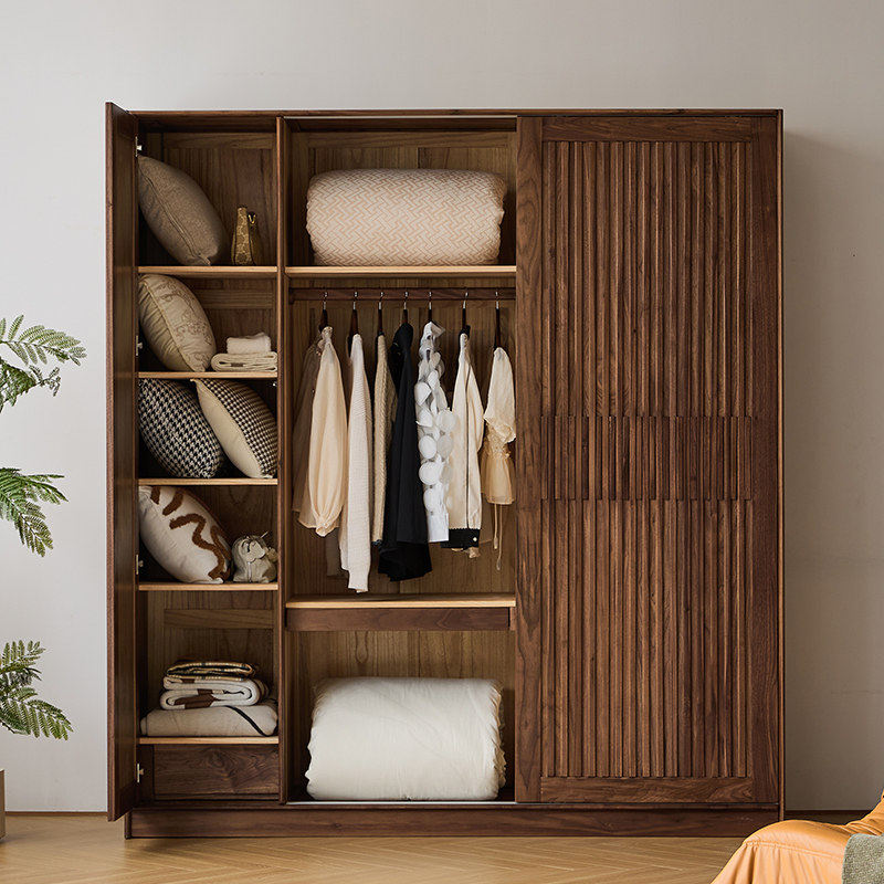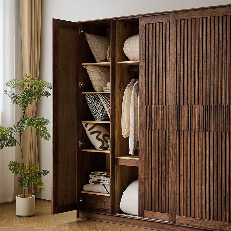 三马家具 北美黑胡桃木推拉开门全实木移门衣柜收纳柜 格栅衣柜由