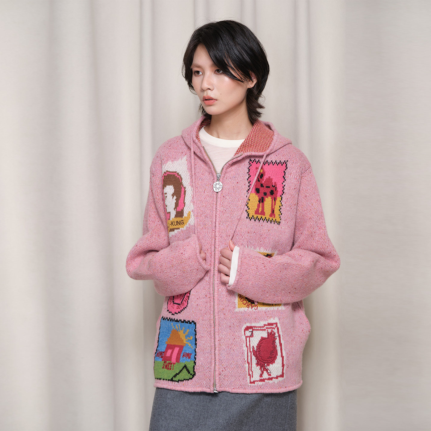 hug 2026早春邮票提花连帽毛衣开衫 GARCON由