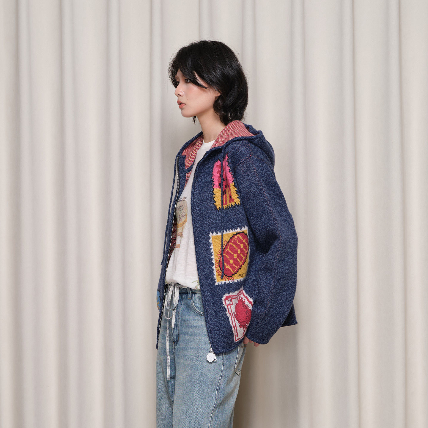 为您提供商品hug 2026早春邮票提花连帽毛衣开衫 GARCON的详细介绍,