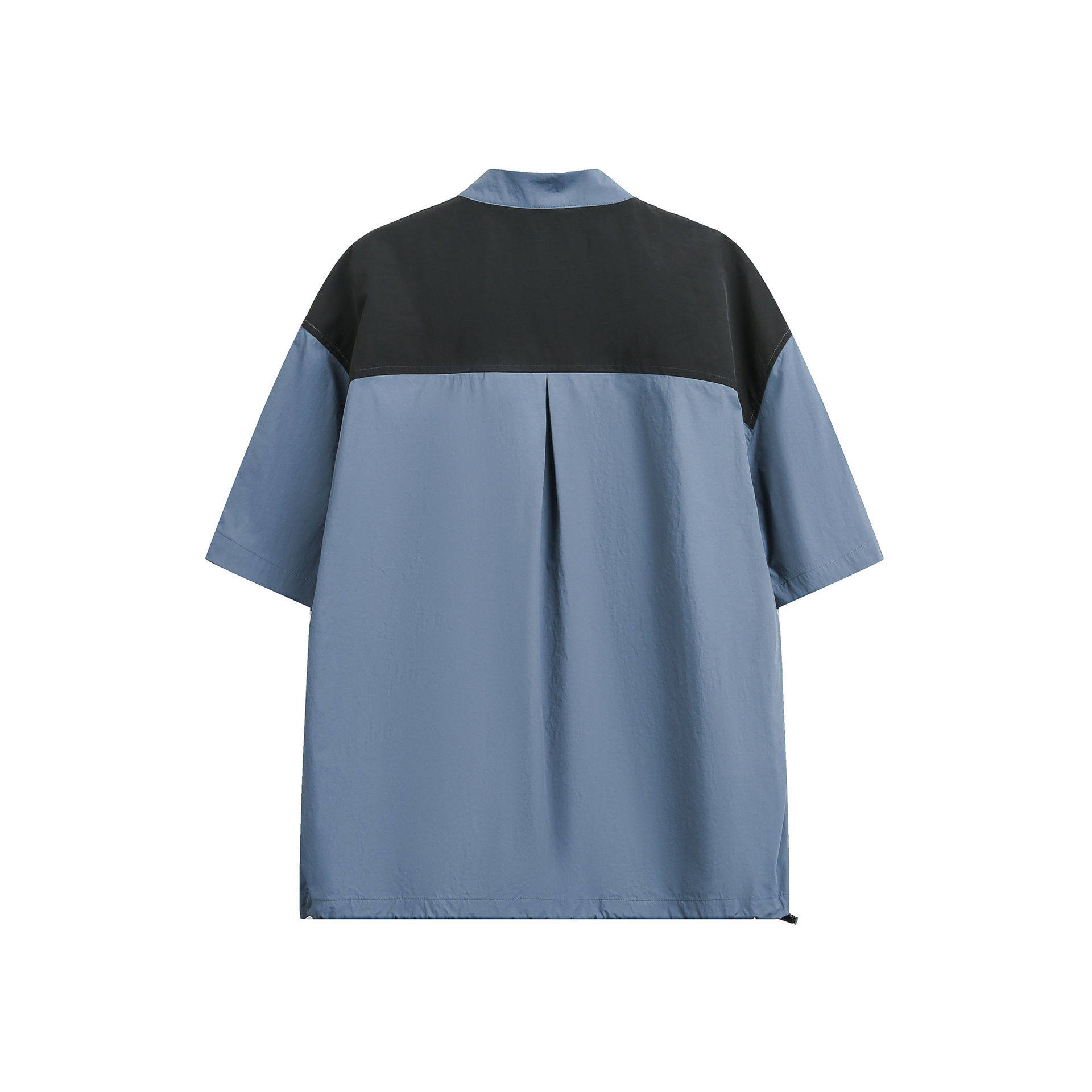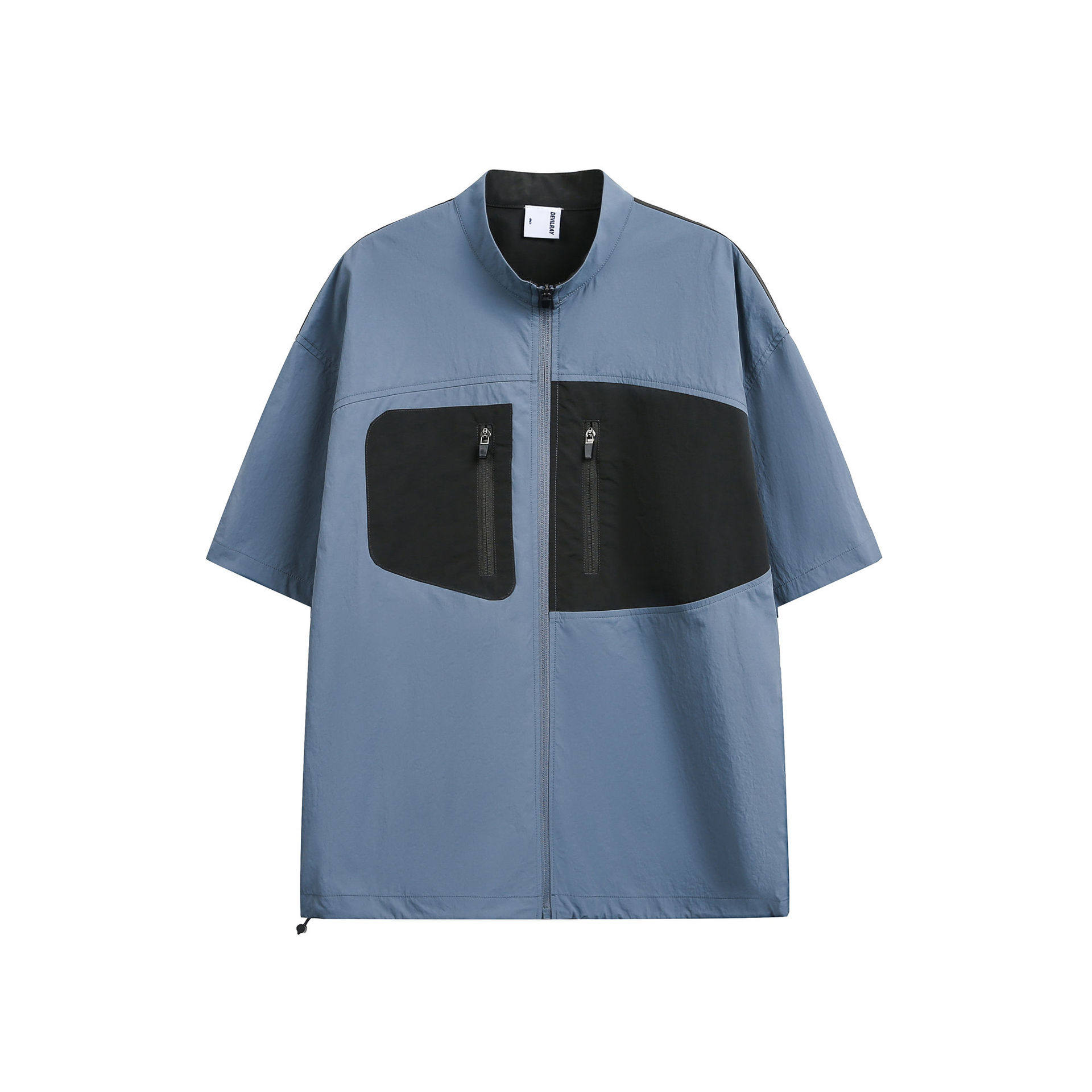 拼色防水短袖 轻薄运动速干拉链衬衣休闲风宽松男士 撞色开衫 衬衫