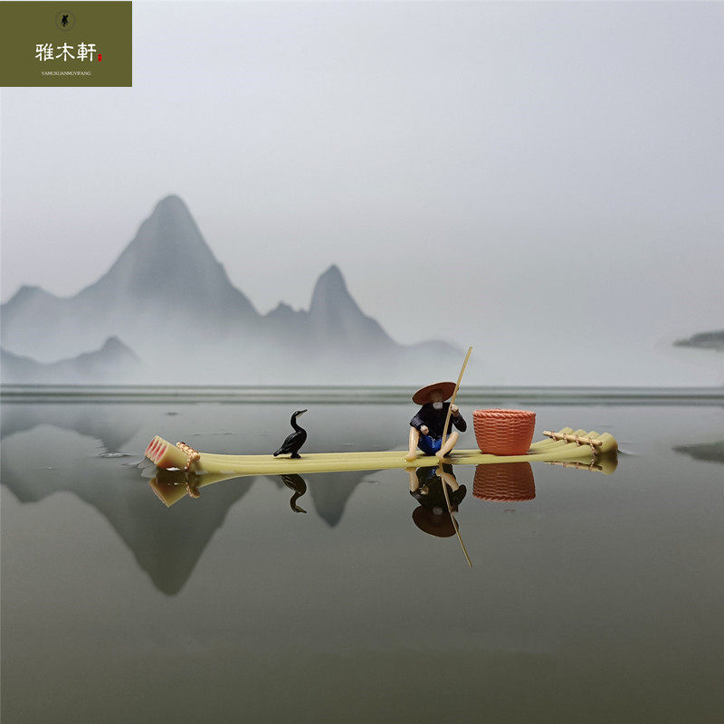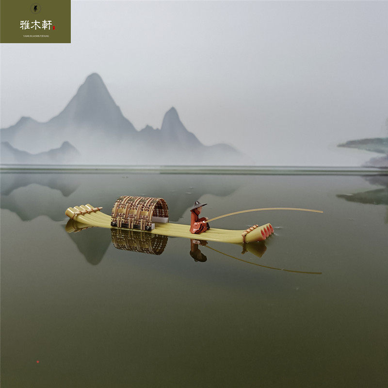 江南小船可漂浮鱼缸水池假山流水摆件微缩饰品拍摄道具竹筏船模型由