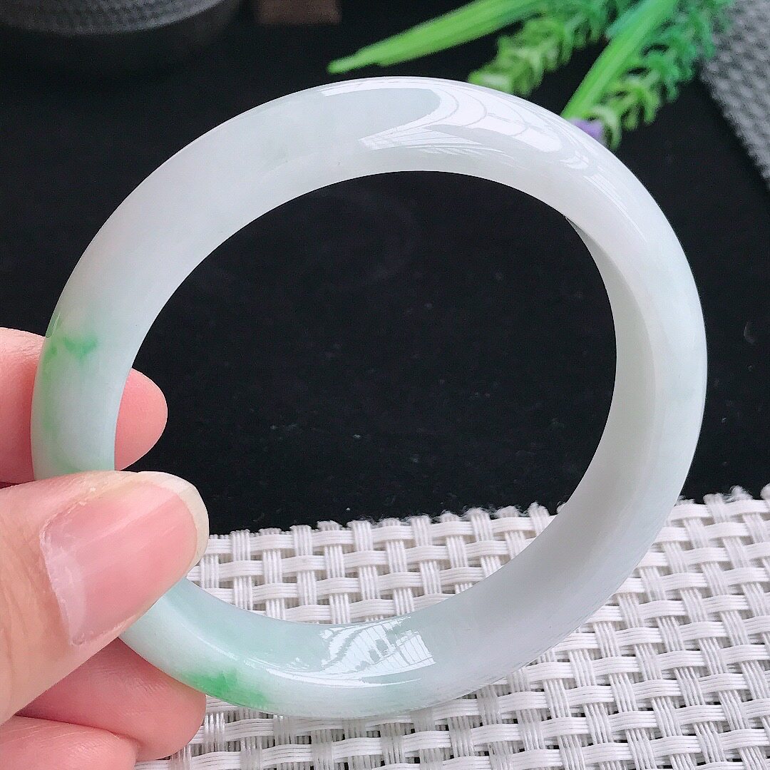 实拍A货翡翠59.8 8.3老坑冰润白底青手镯飘阳绿翡翠玉镯手环 12.9