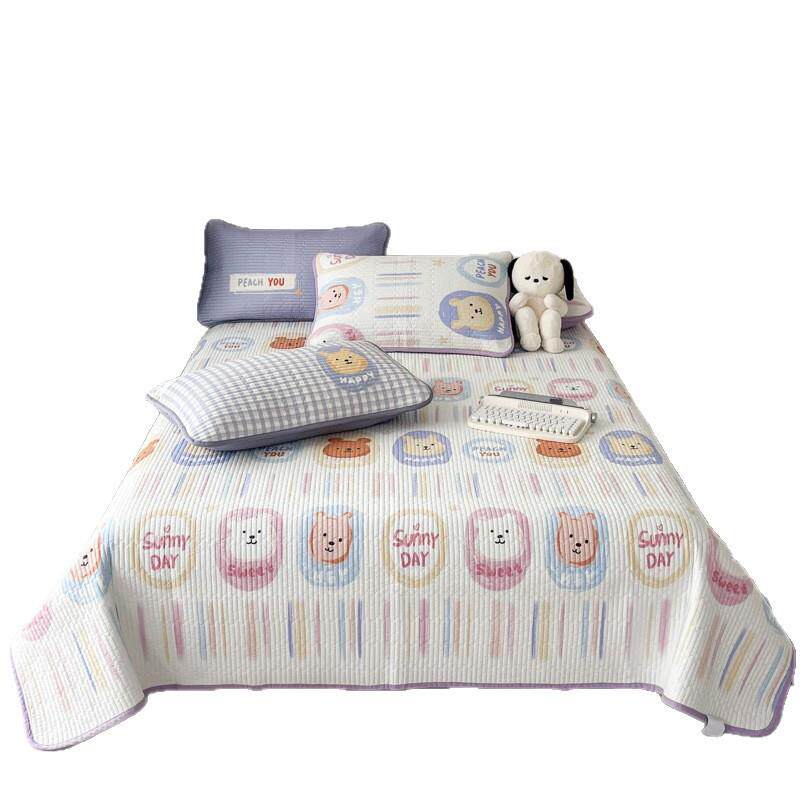 韩式 印花绗缝夹棉高温水洗柔软床盖三件套榻榻米炕盖 双面全棉数码