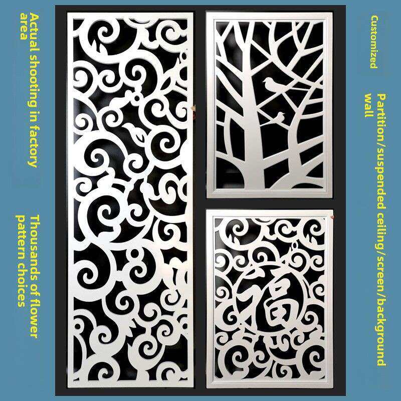 饰PVC镂空雕花板客厅背景墙格栅屏风隔断通花 吊顶花格天花封顶装