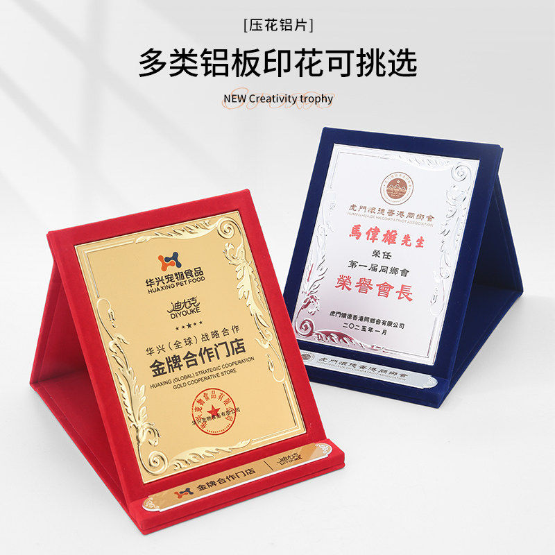 创意设计定制奖杯奖章金属证书奖状纪念牌表彰荣誉授权牌通用