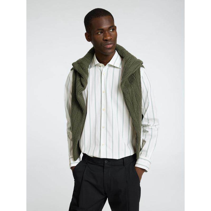 代购 衬衫 透气抗皱条纹棉质商务通勤衬衣爆款 SELECTED思莱德男士