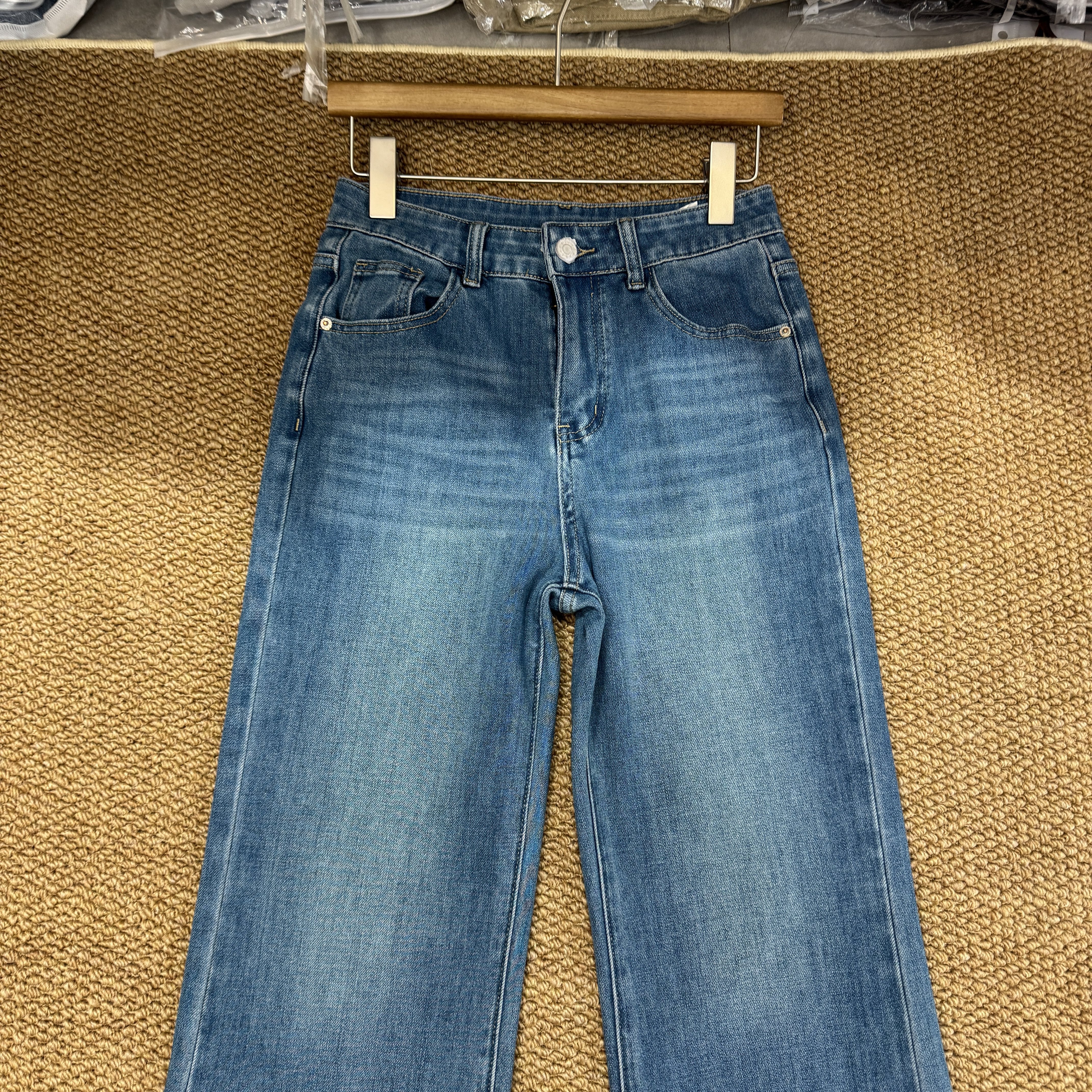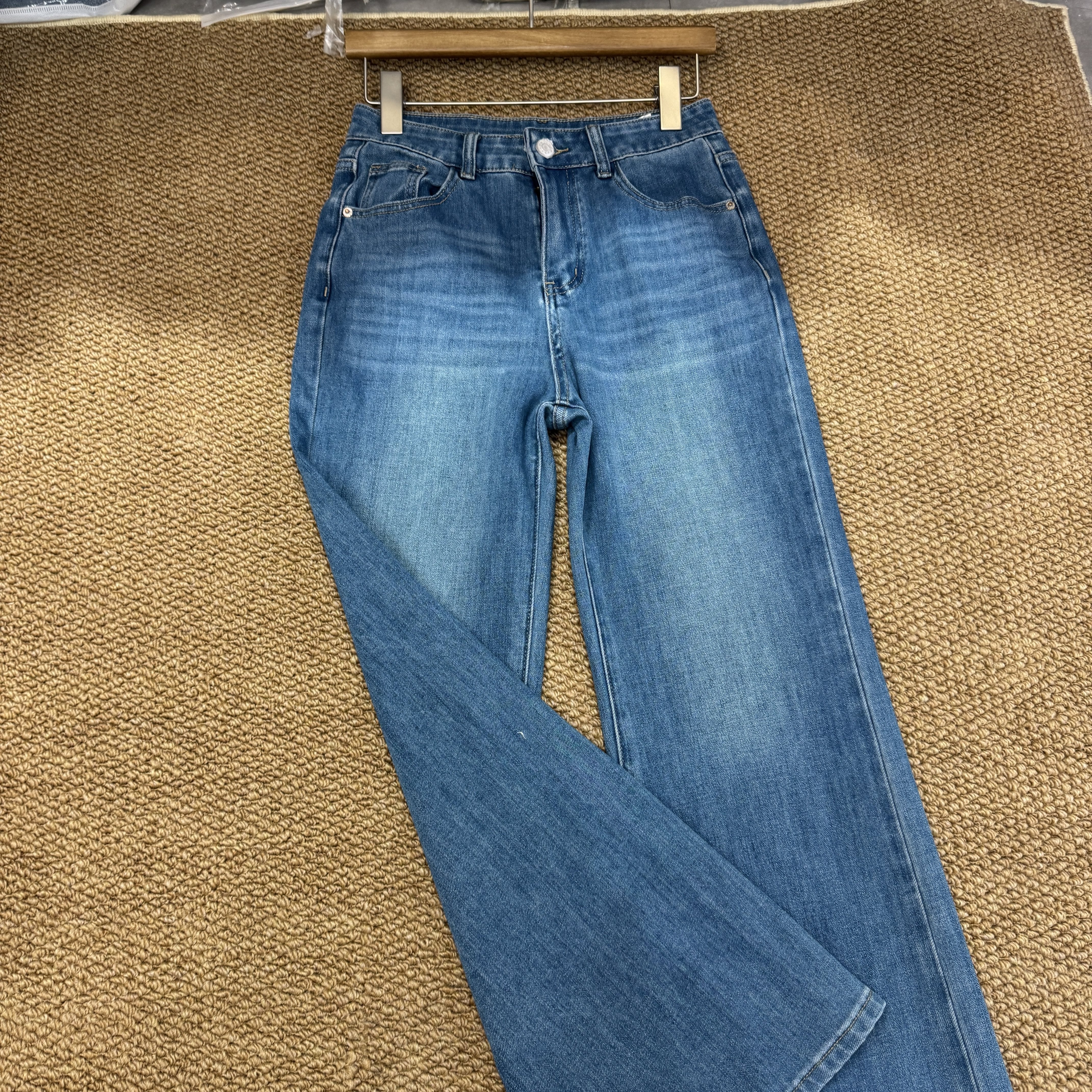 2026春款 十分微喇裤 蓝色韩代牛仔裤 水洗大牌定制高腰微喇牛仔裤