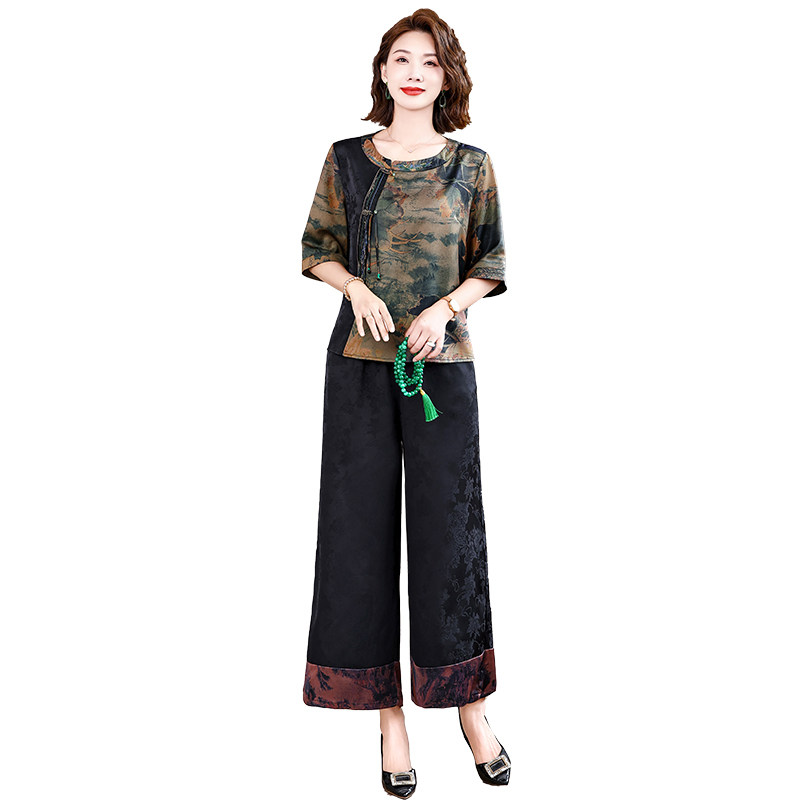 为您提供商品2026夏季 复古香云纱套装 印花宽松阔腿裤 高端洋气妈妈两件套女 新款的详细介绍,