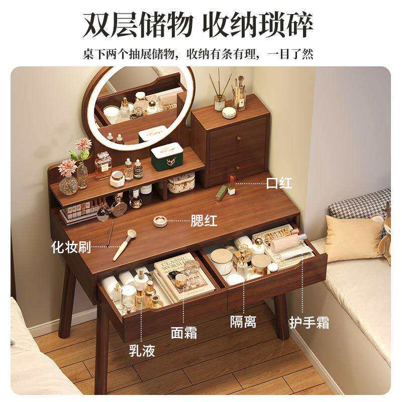 卧室现代简约轻奢高级小户型化妆桌收纳柜一体 梳妆台实木岩板新款